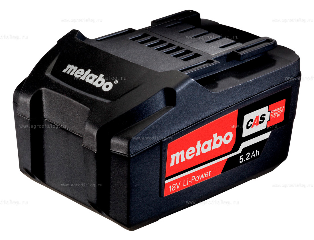 - Аккумулятор Metabo 18В 5.2 Ач LI-Power Extreme совместим со всеми аккумуляторными устройствами Metabo 18B.