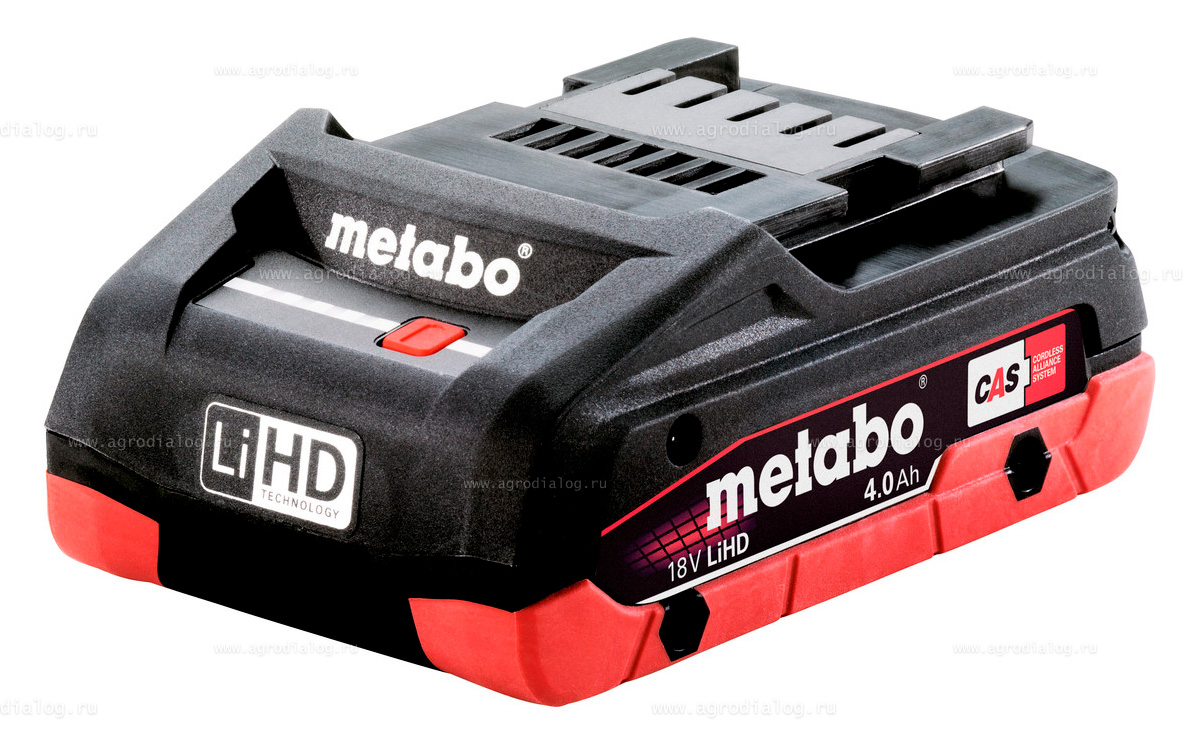 - Аккумулятор Metabo LiHD 18В 4.0 Ач совместим со всеми аккумуляторными устройствами Metabo 18B.