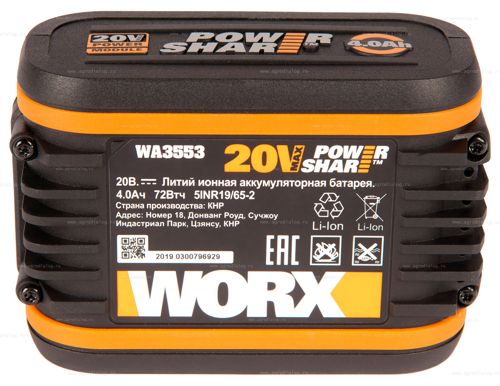 - Пара таких батарей позволит вам работать со всей линейкой 40-Вольтовой техники Worx.