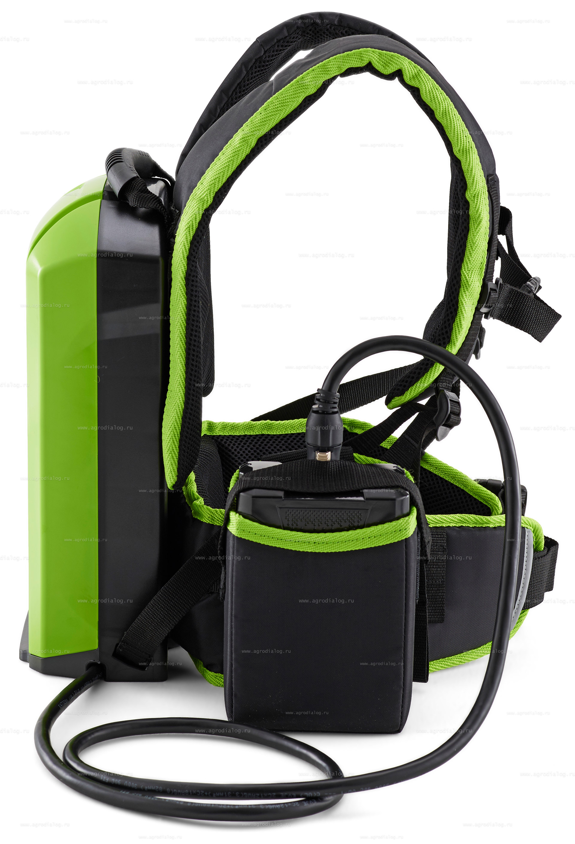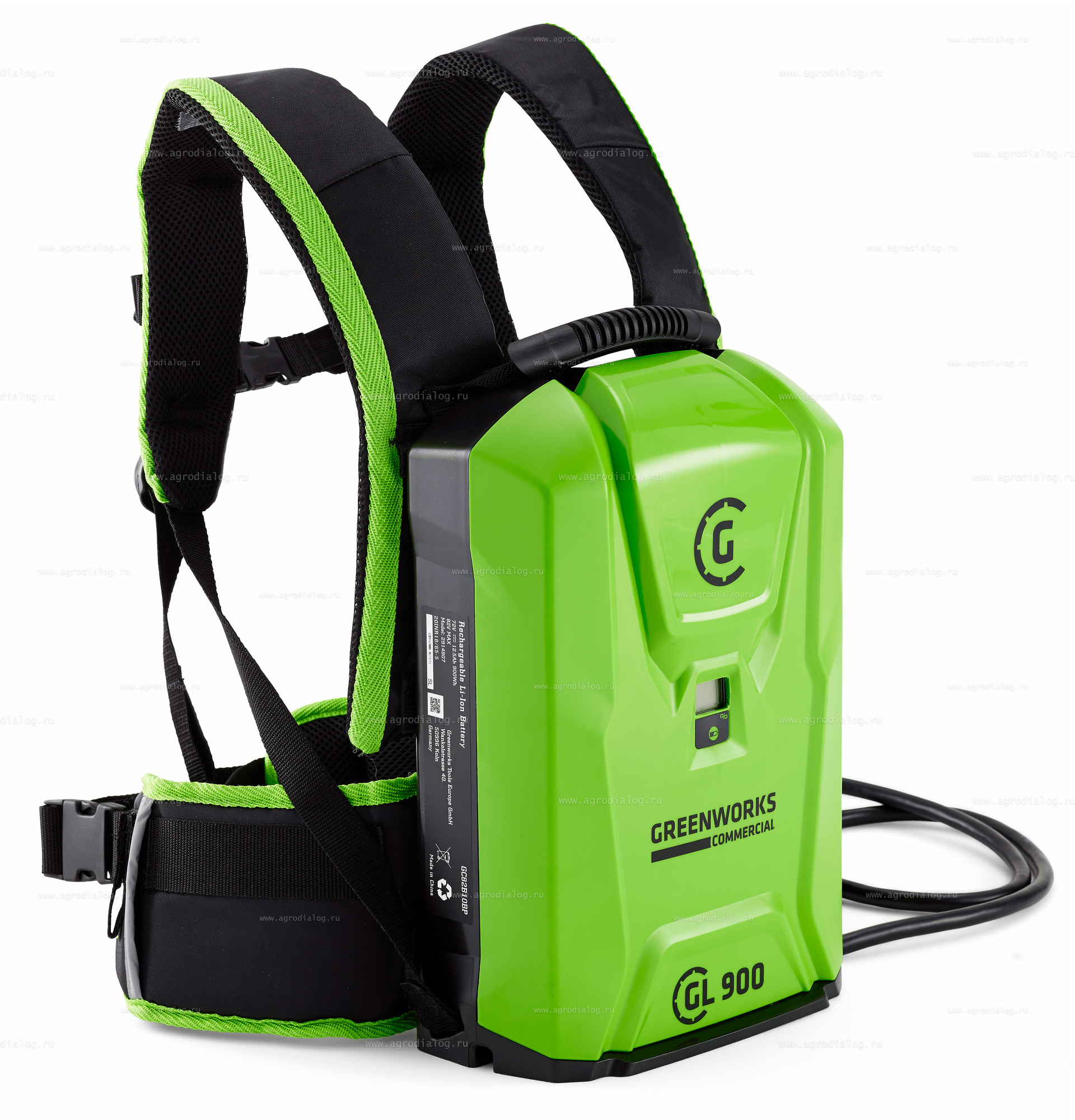 Большой ранцевый литий-ионный аккумулятор Greenworks GL 900 позволяет осуществлять продолжительную высокопроизводительную эксплуатацию аккумуляторного инструмента с меньшим количеством перерывов для подзарядки. Так как данный аккумулятор литий-ионный, он не имеет эффекта памяти. А это значит, что его можно подключать к сети даже если он разряжен не полностью. Ёмкость батареи при этом остаётся неизменной. Мягкие плечевые ремни и пояс снимают нагрузку со спины, а главное, легко регулируется в соответствии с индивидуальными параметрами владельца. А светодиодная индикация текущего уровня заряда как на самом устройстве, так и на устанавливаемом в нем адаптере позволяет быстро получить информацию о том, когда потребуется подзарядка. Аккумулятор состоит из ячеек самого высокого класса, произведенных японской фирмой Panasonic. Батарея снабжена специальной платой управления, благодаря которой ячейки заряжаются и разряжаются равномерно и одновременно, что продлевает срок жизни аккумулятора, а также убирается эффект потери мощности инструмента при разряде. Емкость: 12.5 Ач. Напряжение: 82В. Оптимальные условия хранения - 40% заряда, температура выше 0°. Работает при температуре до -20°. Быстрый заряд аккумулятора (90 мин = 50%;180 мин = 100%). Вес с ременной оснасткой - 5,4 кг. Литиево-ионный аккумулятор Greenworks GL 900 совместим с ручным инструментом Greenworks Commercial 82V.