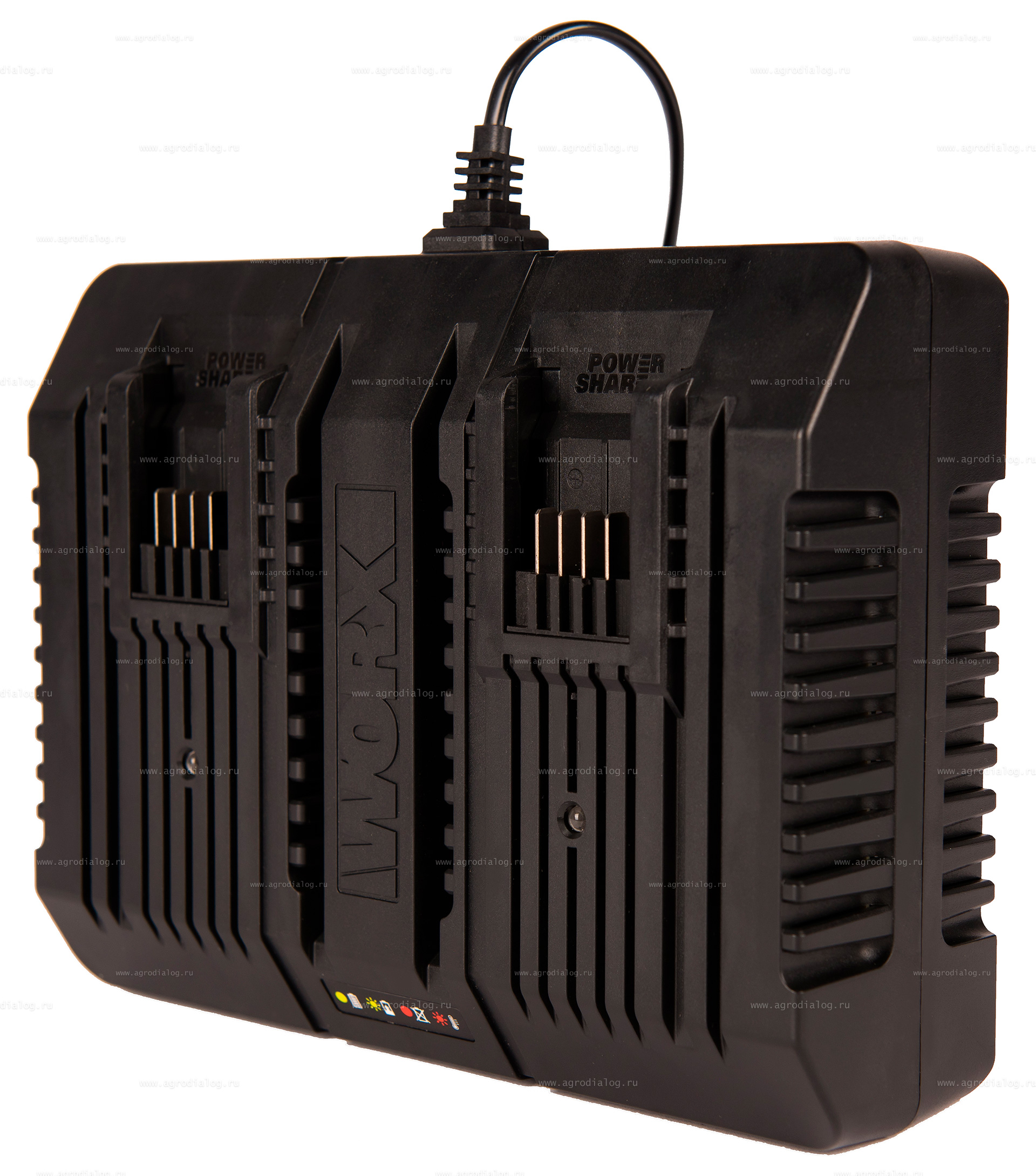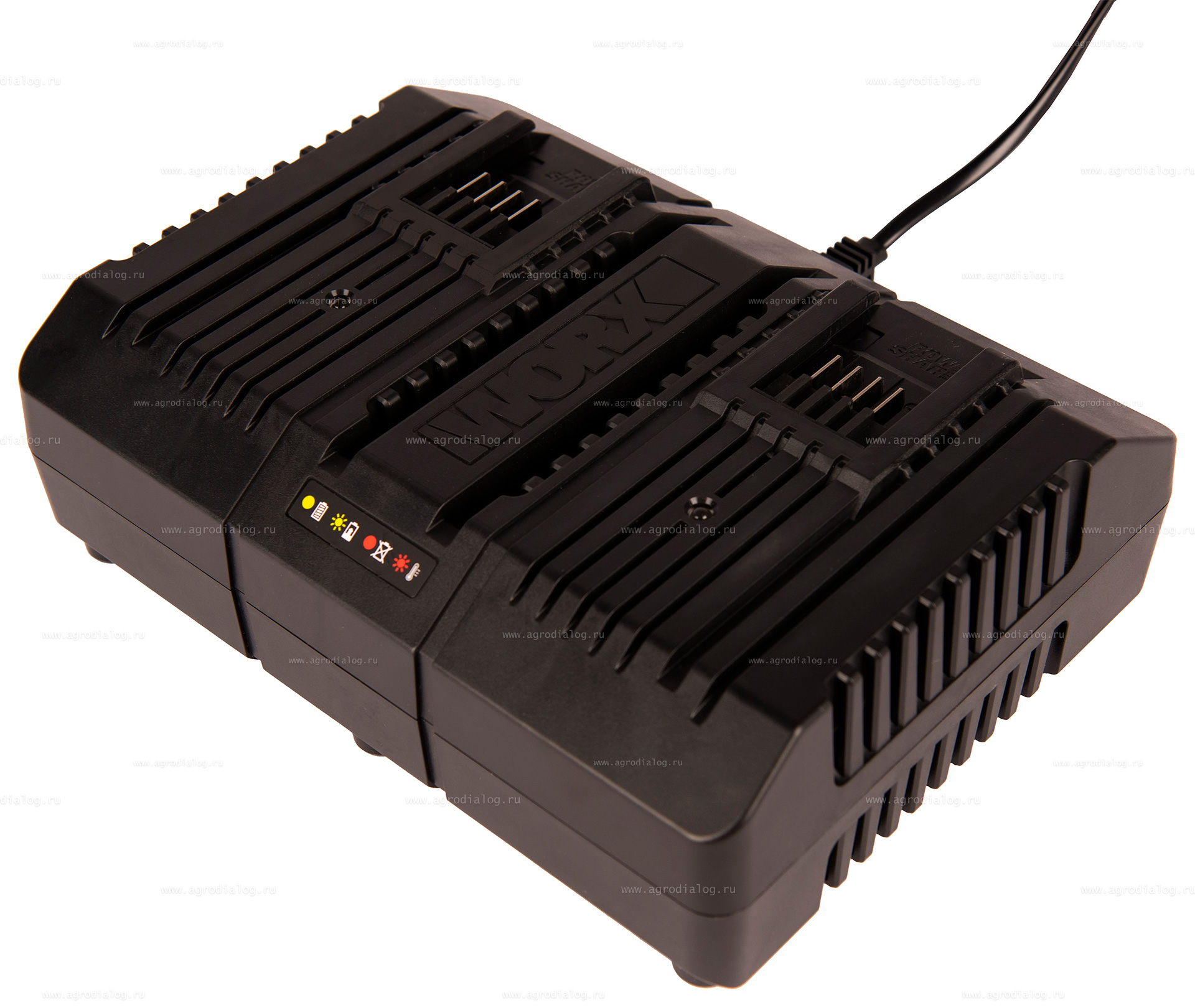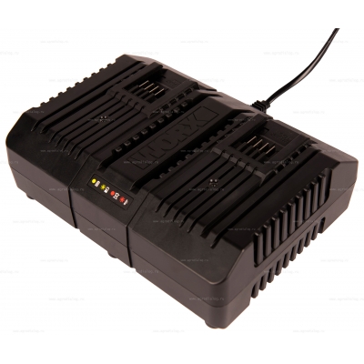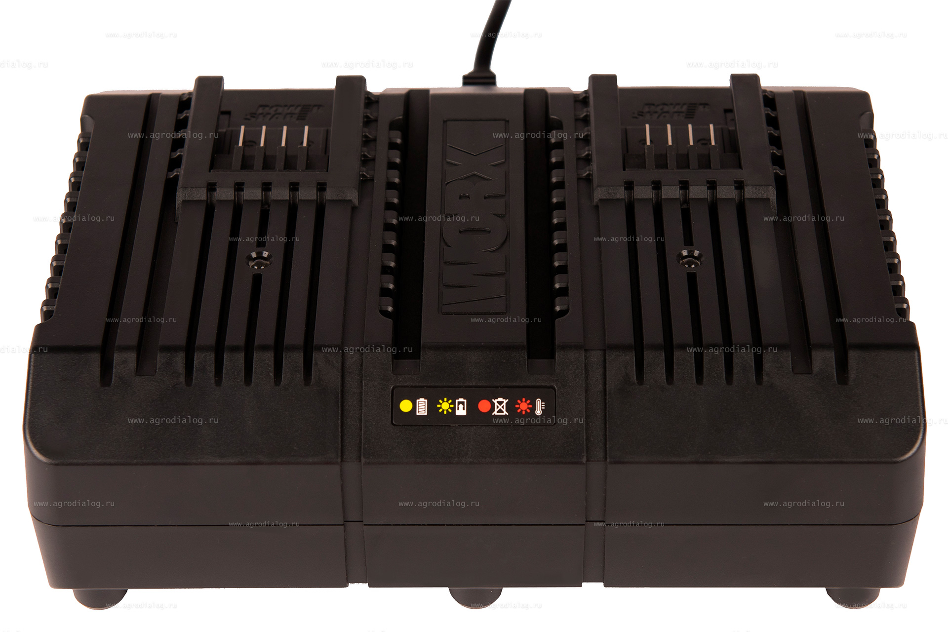Двойное зарядное устройство Worx WA3883 для ускоренной зарядки литий-ионных аккумуляторов. Данная модель обладает индикатором уровня заряда и системой защиты от перезаряда аккумулятора. При достижении 100% заряда питание автоматически отключается. Устройство снабжено перфорацией для защиты от перегрева и прорезиненными ножками для устойчивости на плоскости. Предусмотрены проушины для крепления на стену. Выходное напряжение: 20 В. Ток зарядки каждого порта: 2 А. Номинальная потребляемая мощность: 100 Вт. Вес: 0,95 кг.