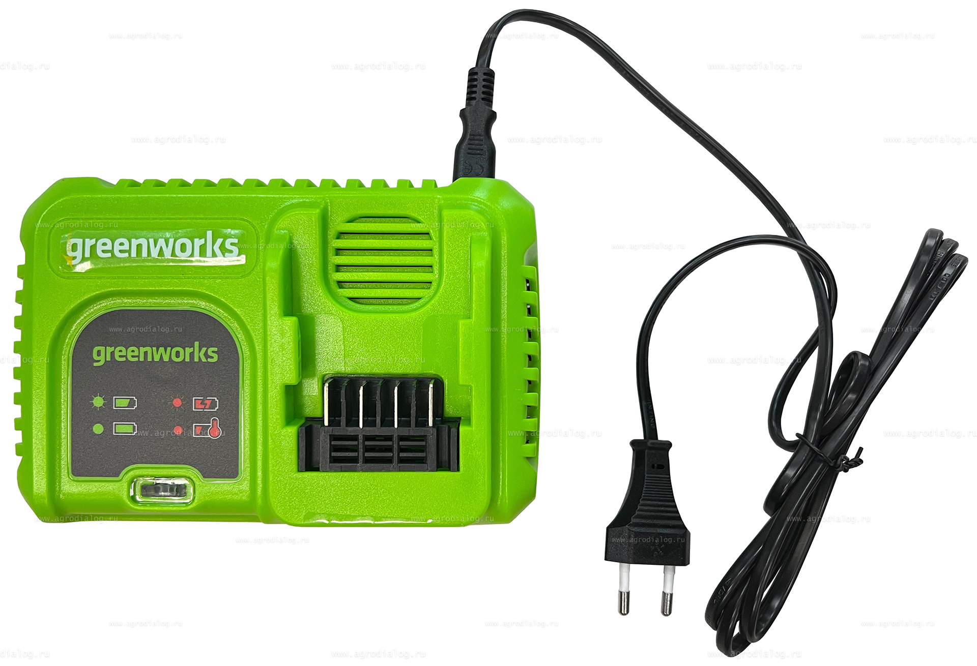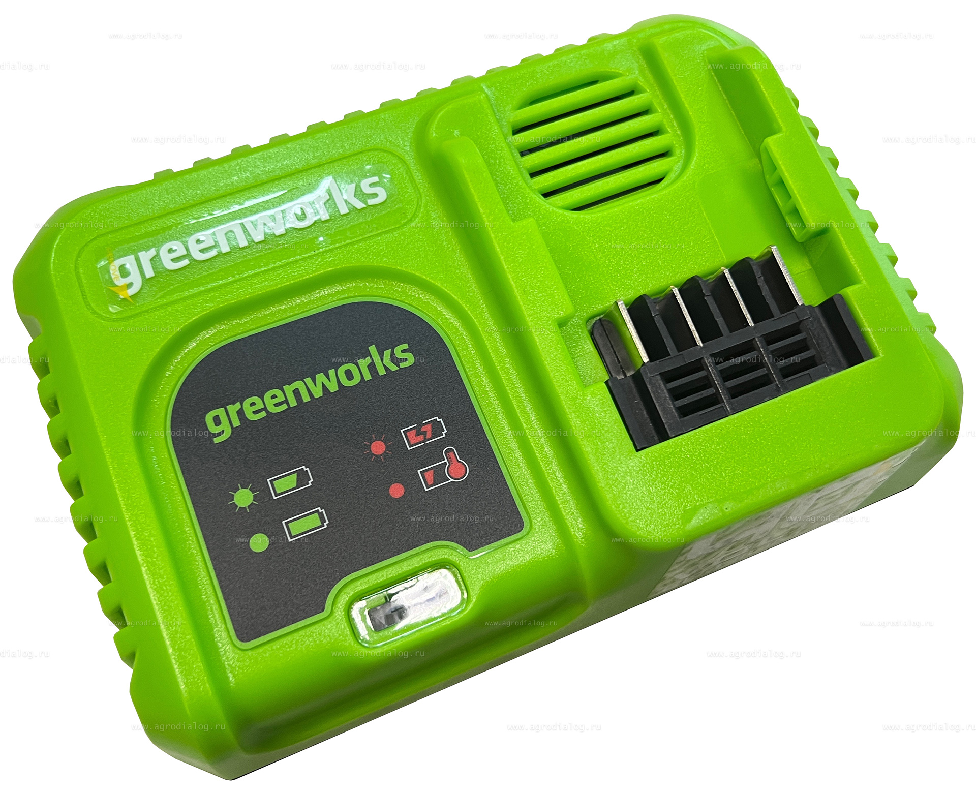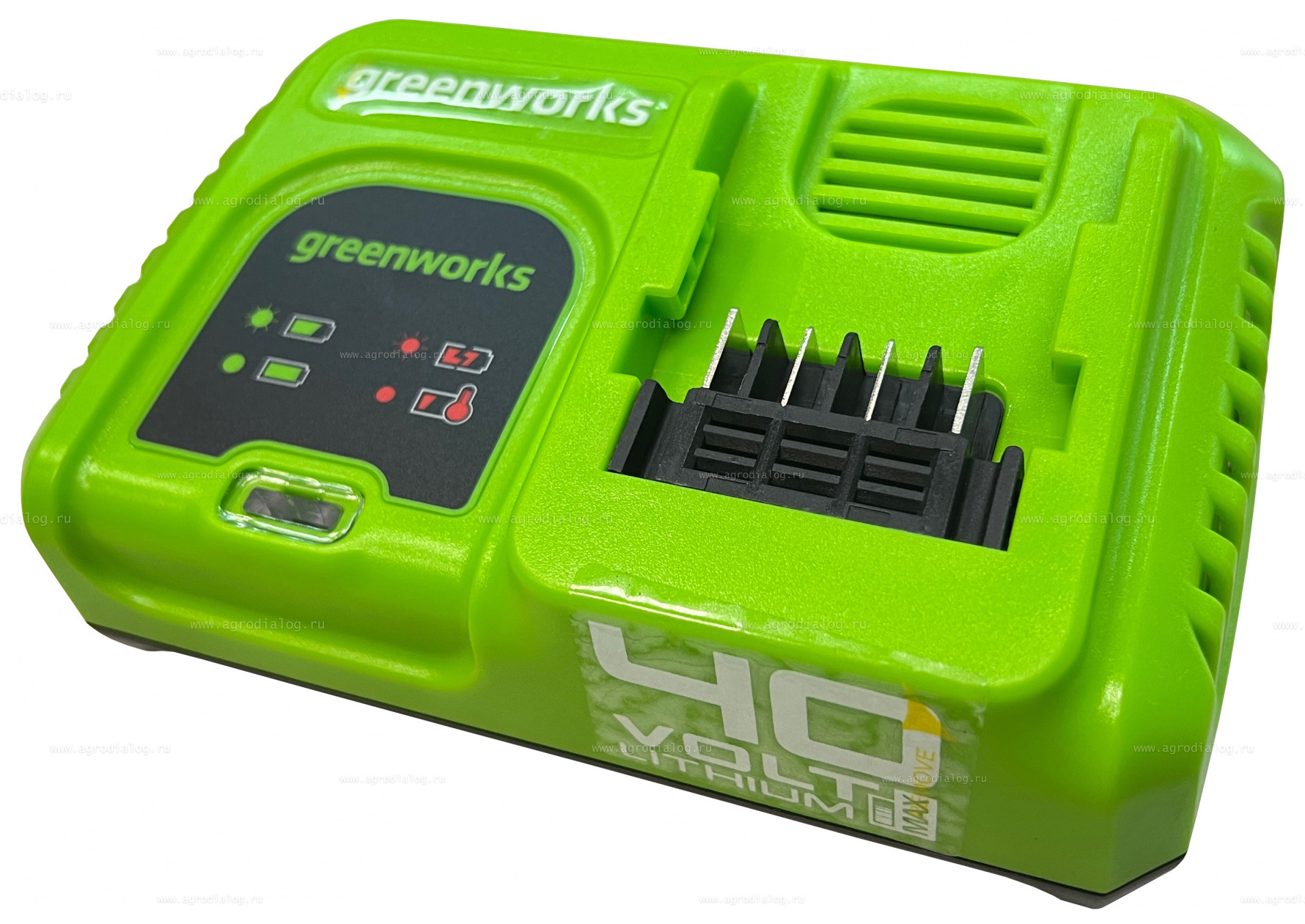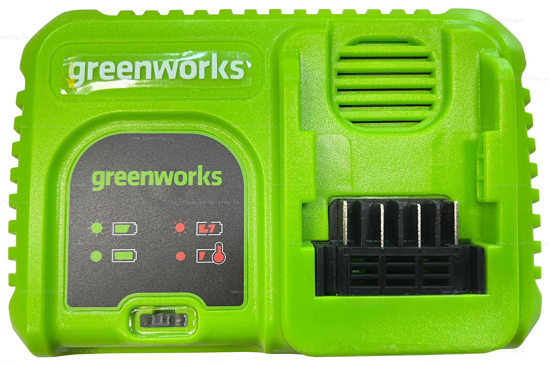 Зарядное устройство Greenworks G40UC5 для ускоренной зарядки литий-ионных аккумуляторов. Данная модель обладает индикатором уровня заряда и системой защиты от перезаряда аккумулятора. При достижении 100% заряда питание автоматически отключается. Устройство снабжено перфорацией для защиты от перегрева и прорезиненными ножками для устойчивости на плоскости. Предусмотрены проушины для крепления на стену. Ток зарядки: 5 А.