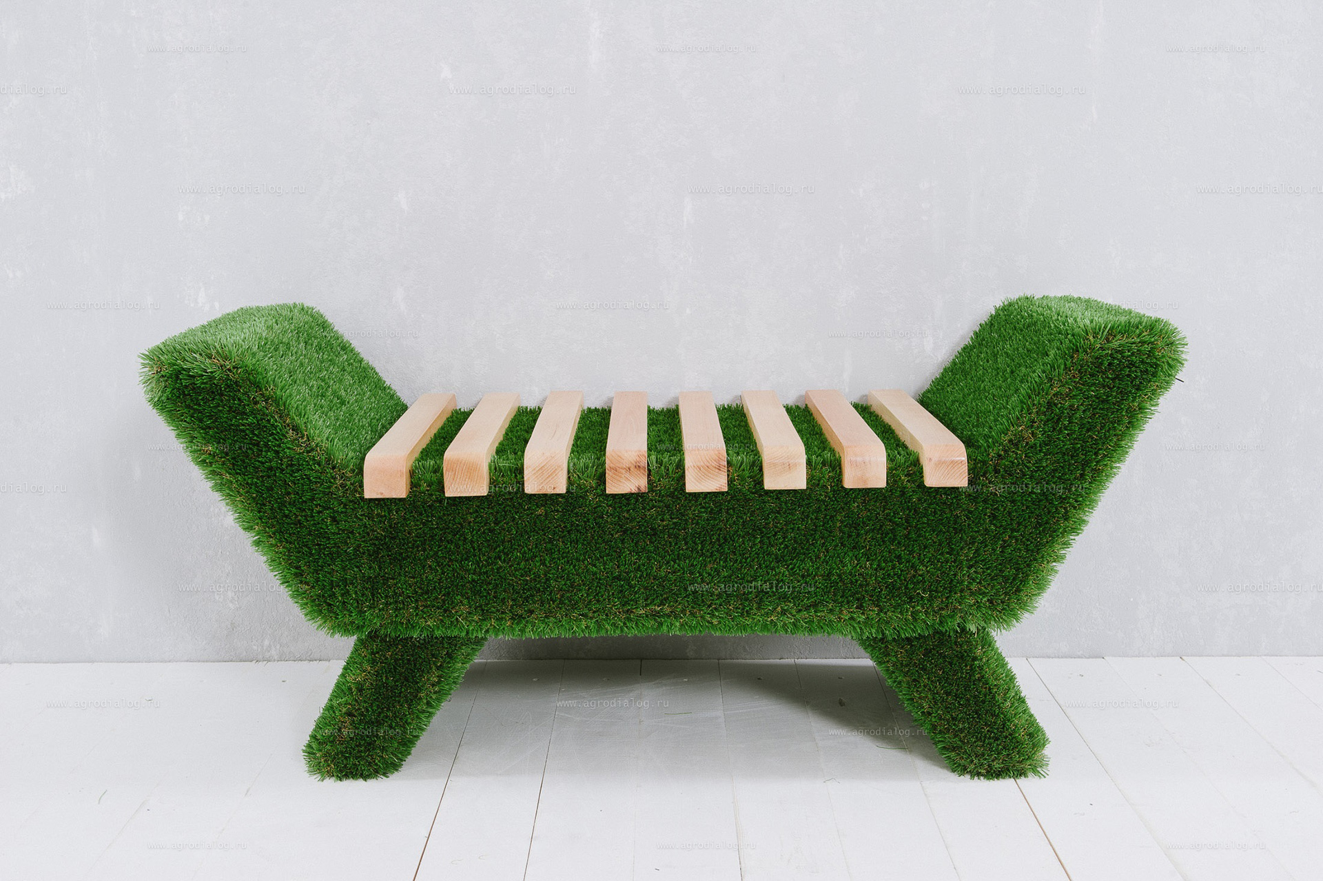 - Лавочка из искусственной травы Barocco станет прекрасным украшением в течение всего года, так как ей не страшны осадки и сезонные перемены погоды.