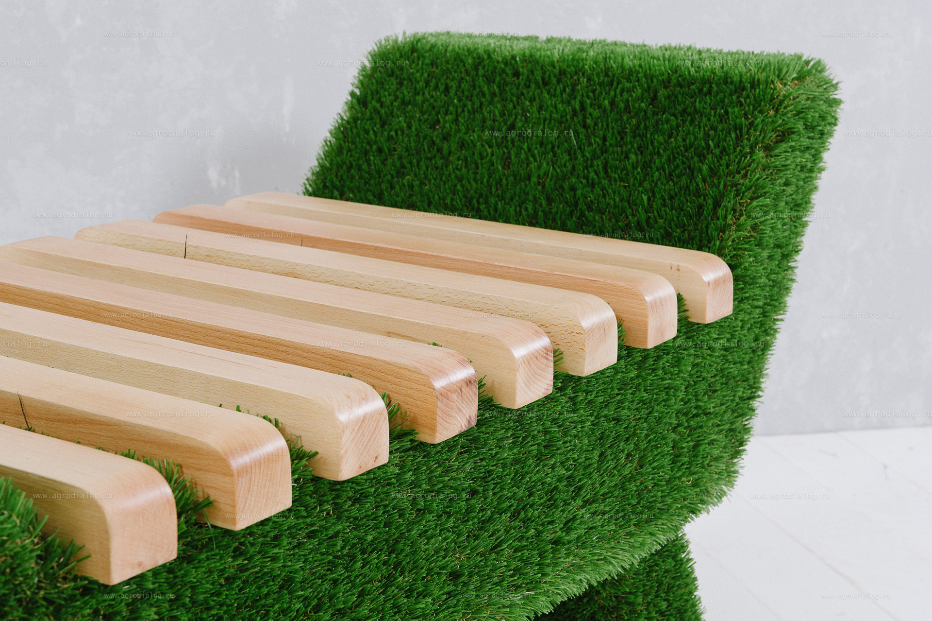 Для благоустройства вашего сада, базы отдыха или парка отлично подойдет лавочка Barocco, с исполнением из искусственной травы премиального класса, бука и стеклопластика.