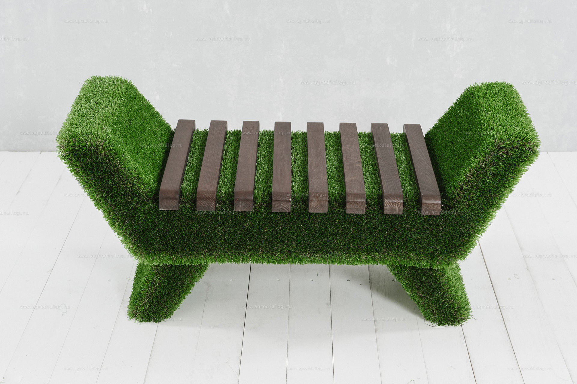- Лавочка из искусственной травы Barocco станет прекрасным украшением в течение всего года, так как ей не страшны осадки и сезонные перемены погоды.