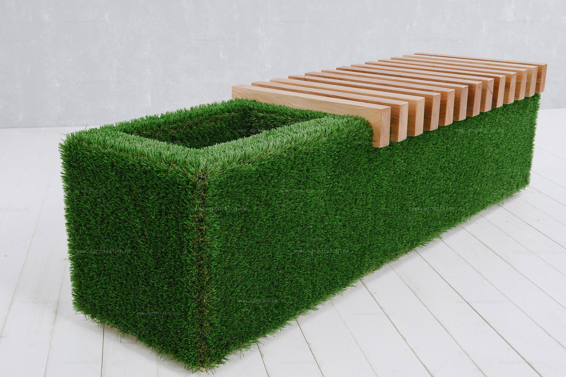 - Лавочка из искусственной травы Sherwood с кашпо для цветов станет прекрасным украшением в течение всего года, так как ей не страшны осадки и сезонные перемены погоды.