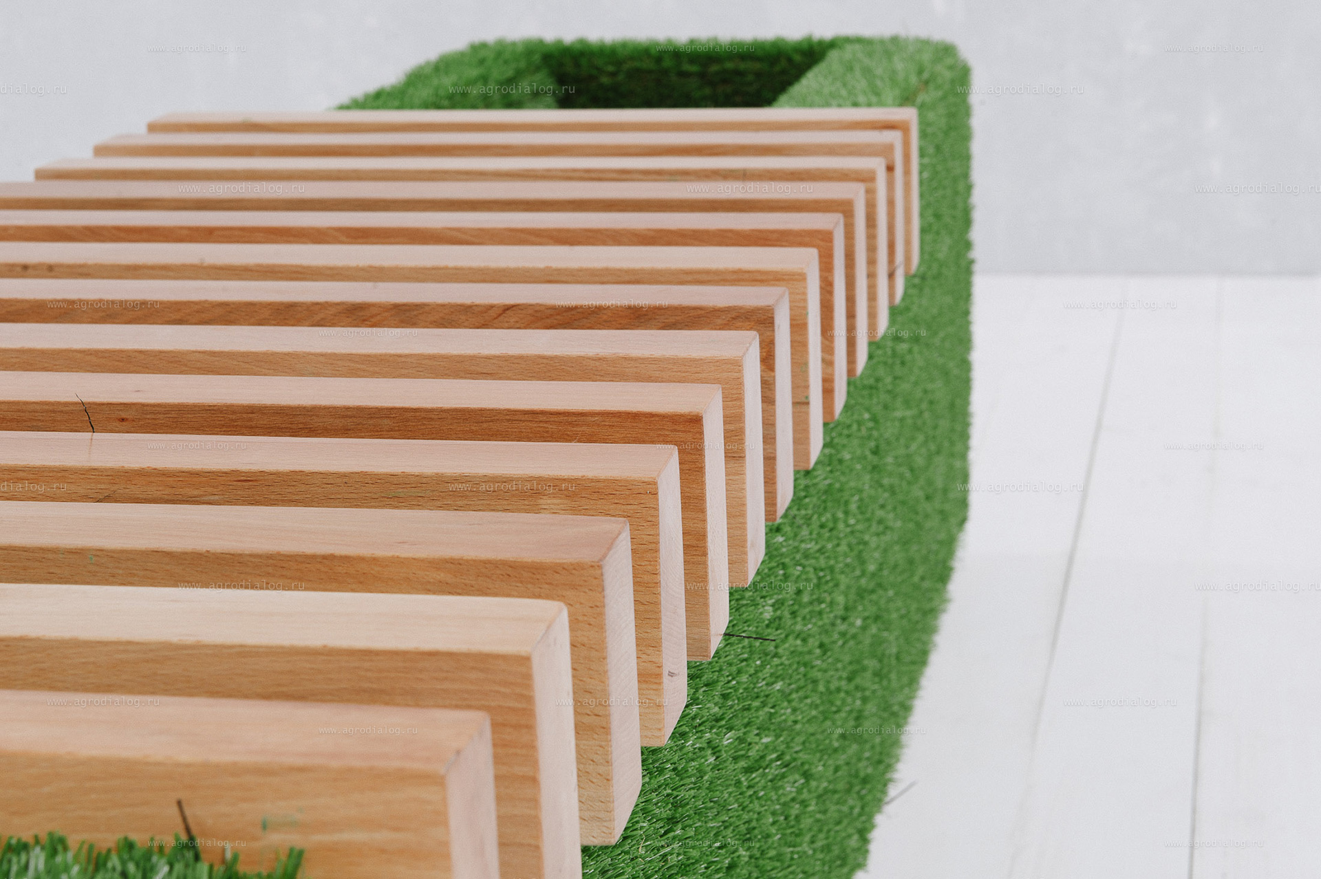 - Декор для лавочки изготавливается из бука. По плотности бук не уступает дубу, и отличается от последнего, лишь мягким рисунком текстуры, а древесина данного дерева очень влагоустойчива и практична.