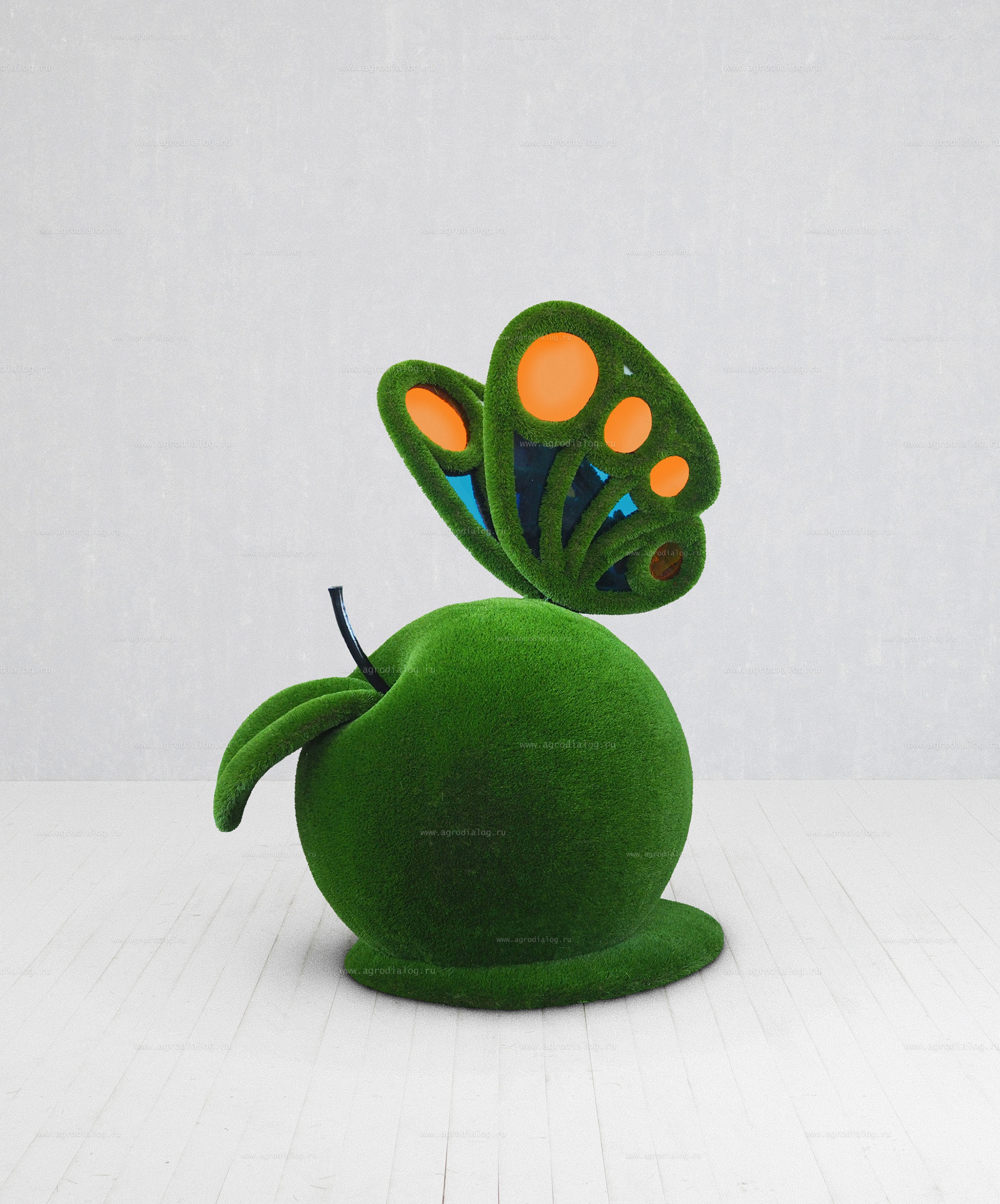 Для благоустройства вашего сада, базы отдыха или парка отлично подойдет садовая фигура «бабочка на яблоке», с исполнением из искусственной травы премиального класса и стеклопластика.
