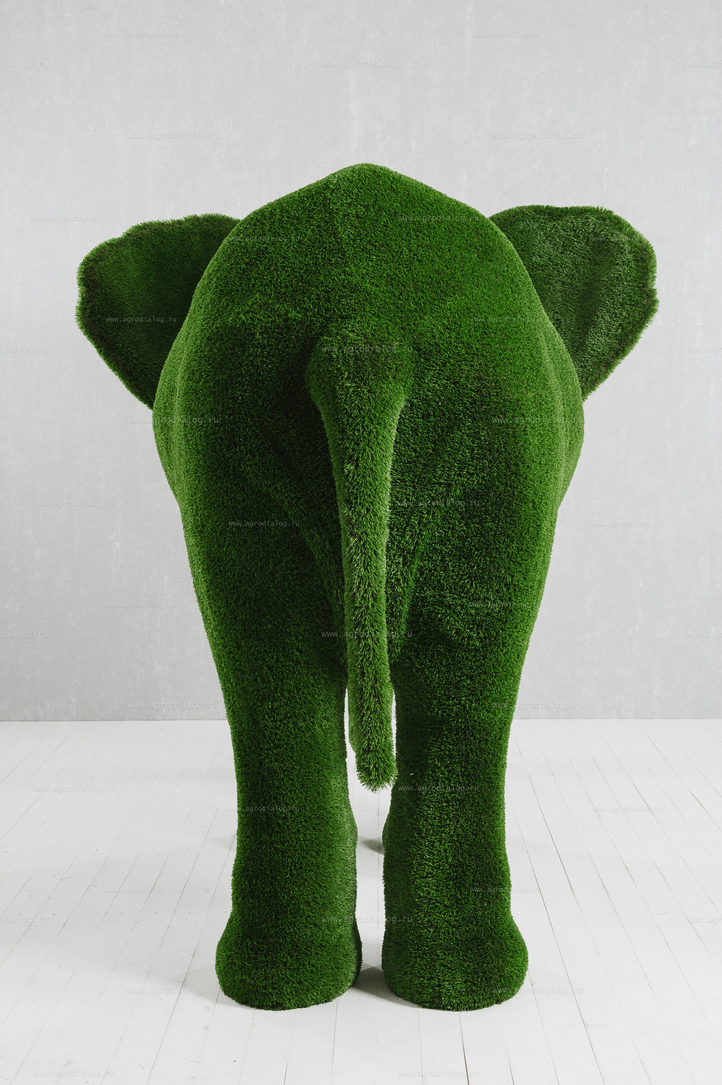 - Садовая фигура из искусственной травы большой слон станет прекрасным украшением в течение всего года, так как ей не страшны осадки и сезонные перемены погоды.