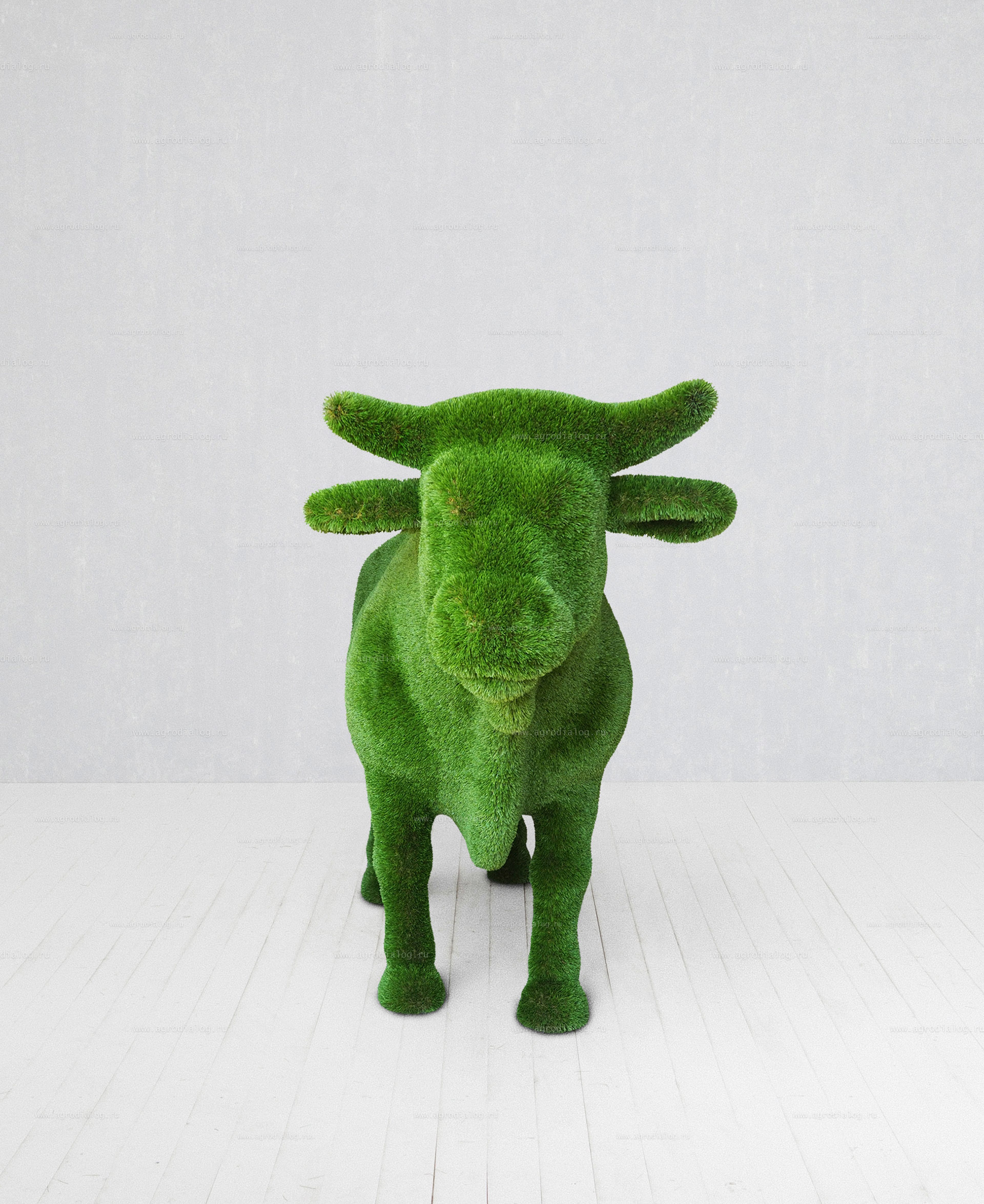 - Садовая фигура из искусственной травы «бык племенной» станет прекрасным украшением в течение всего года, так как ей не страшны осадки и сезонные перемены погоды.