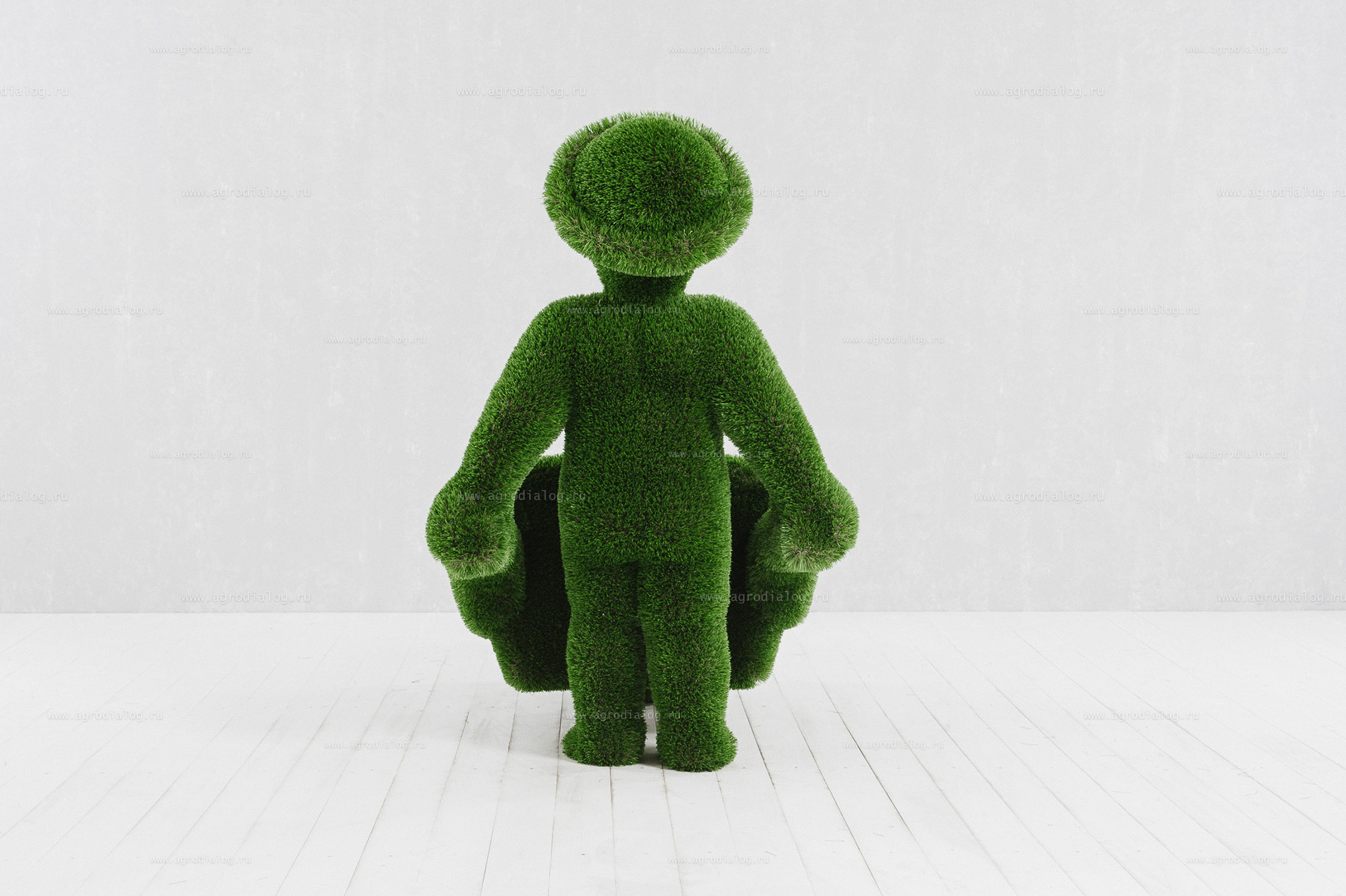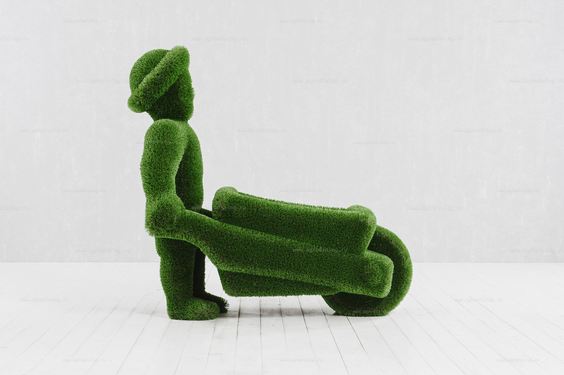 Для благоустройства вашего сада, базы отдыха или парка отлично подойдет садовая фигура «человек с тележкой», с исполнением из искусственной травы премиального класса и стеклопластика.