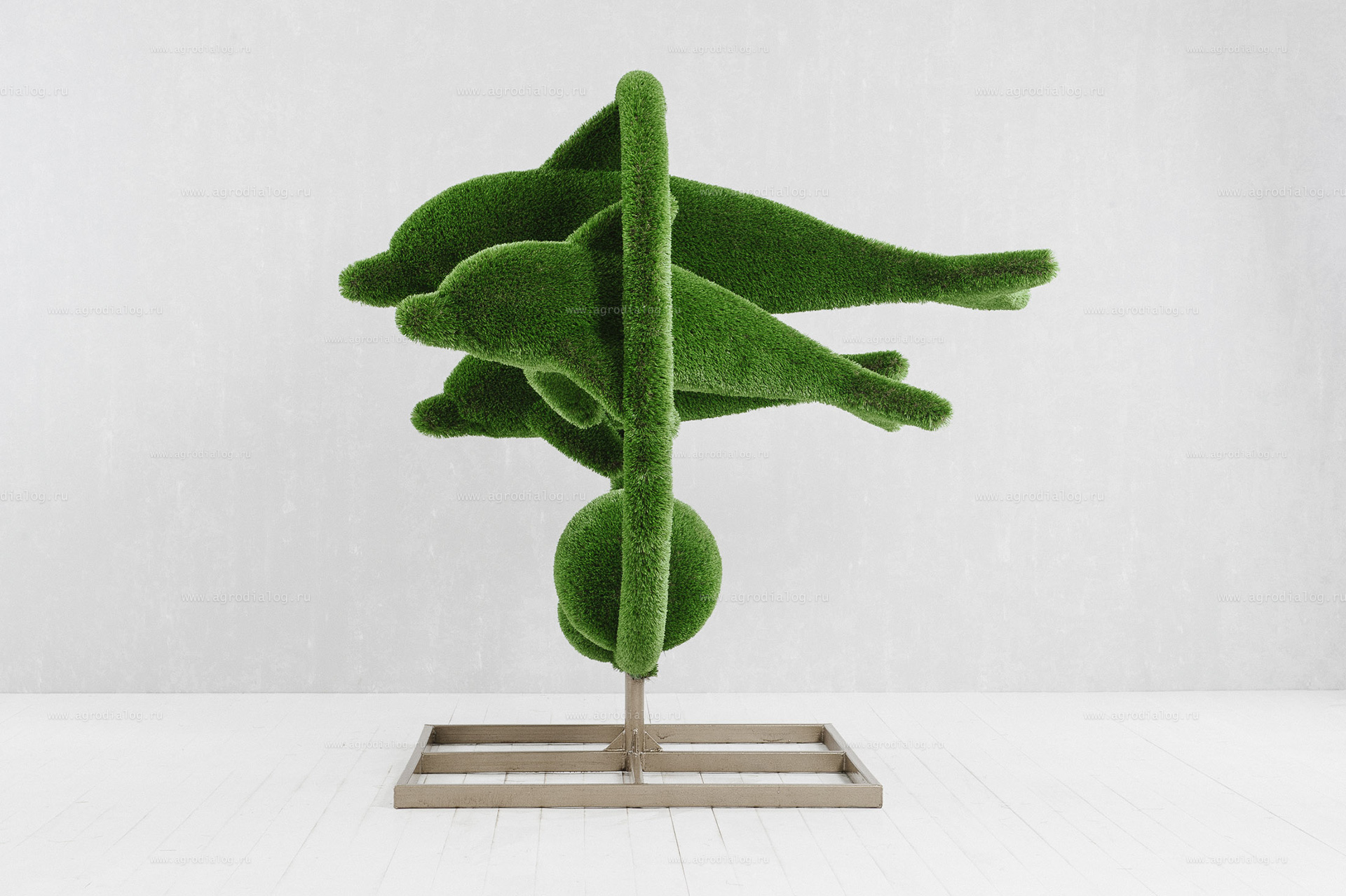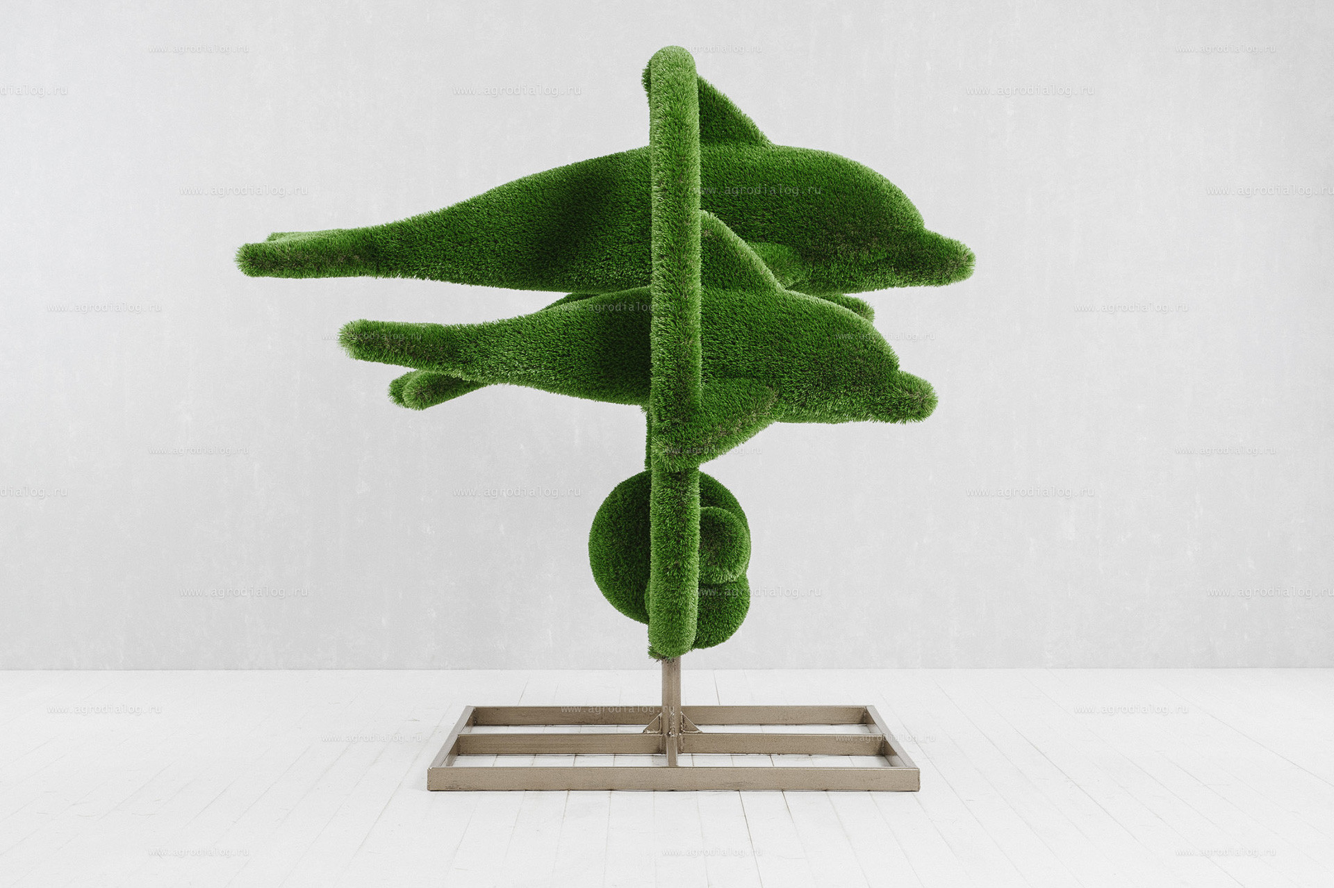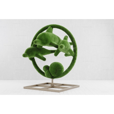 - Садовая фигура из искусственной травы «дельфины» имеет небольшой вес, благодаря чему её легко перевозить, перемещать и монтировать.