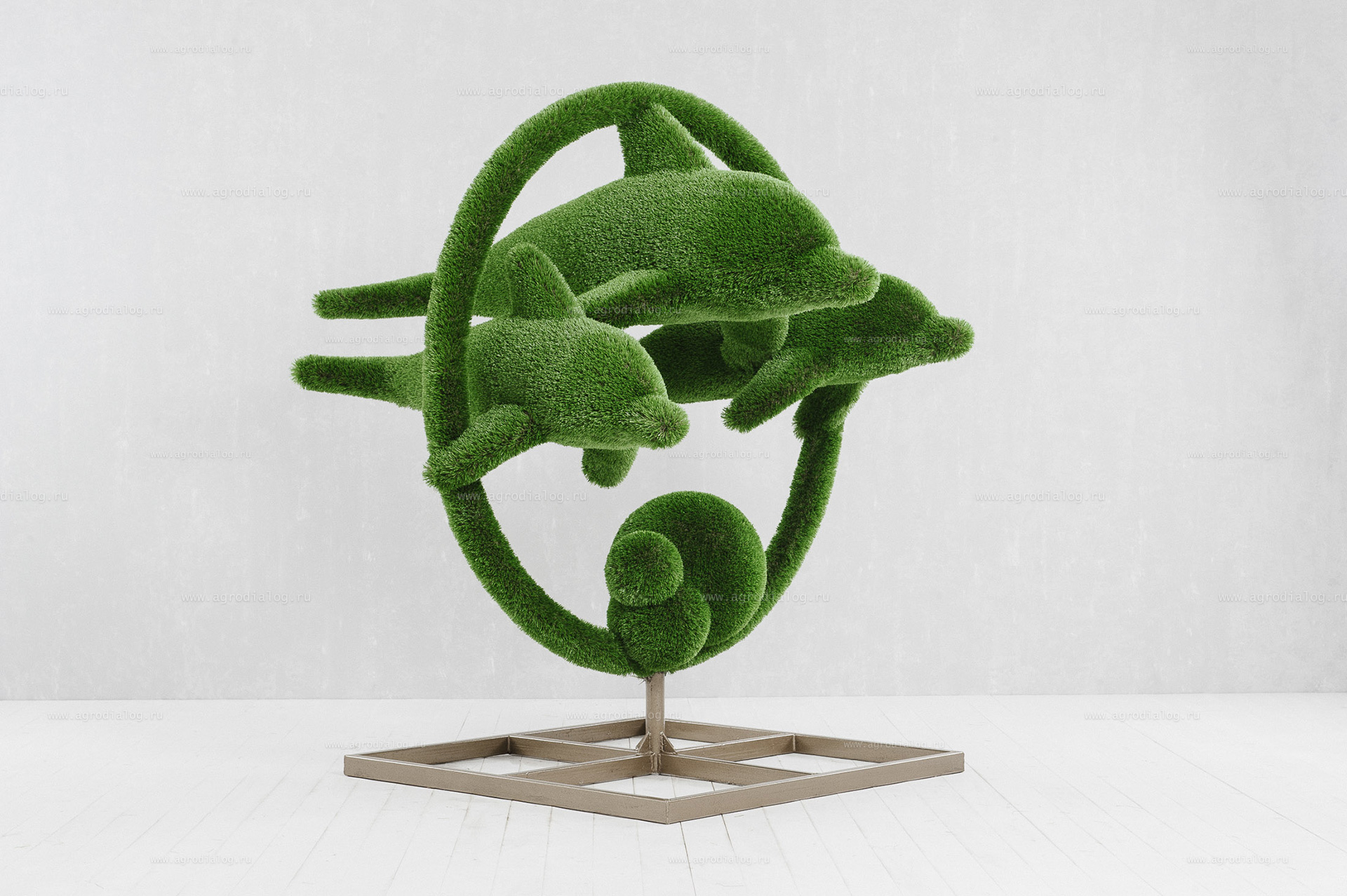 Для благоустройства вашего сада, базы отдыха или парка отлично подойдет садовая фигура «дельфины», с исполнением из искусственной травы премиального класса и стеклопластика.