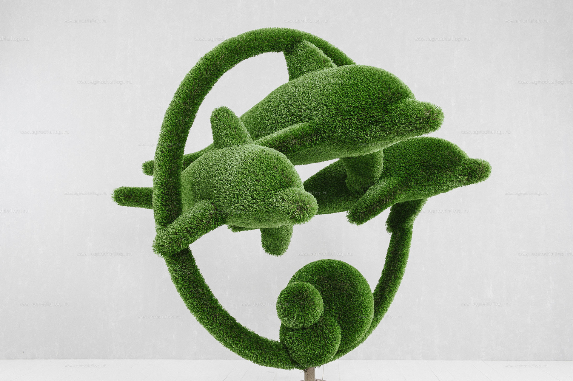 - Садовая фигура из искусственной травы «дельфины» станет прекрасным украшением в течение всего года, так как ей не страшны осадки и сезонные перемены погоды.