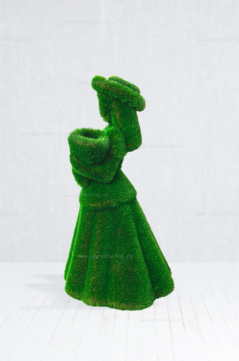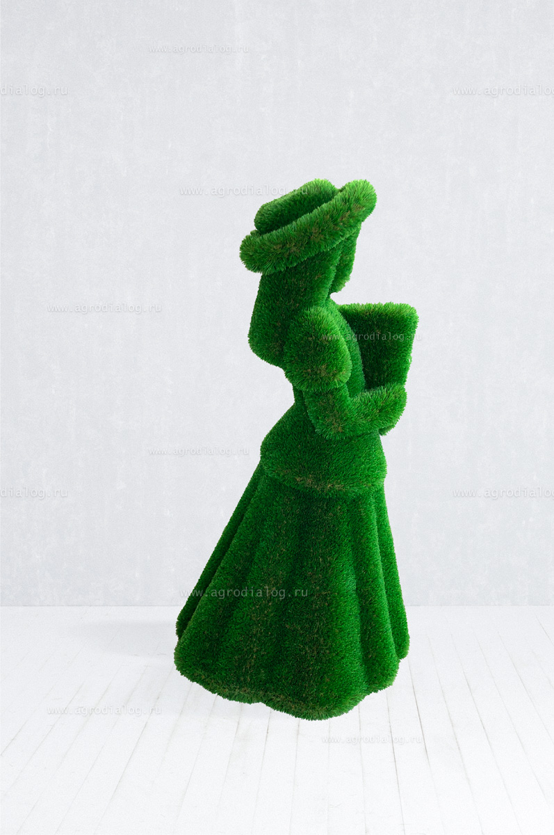 - Садовая фигура из искусственной травы «девочка с букетом цветов» станет прекрасным украшением в течение всего года, так как ей не страшны осадки и сезонные перемены погоды.