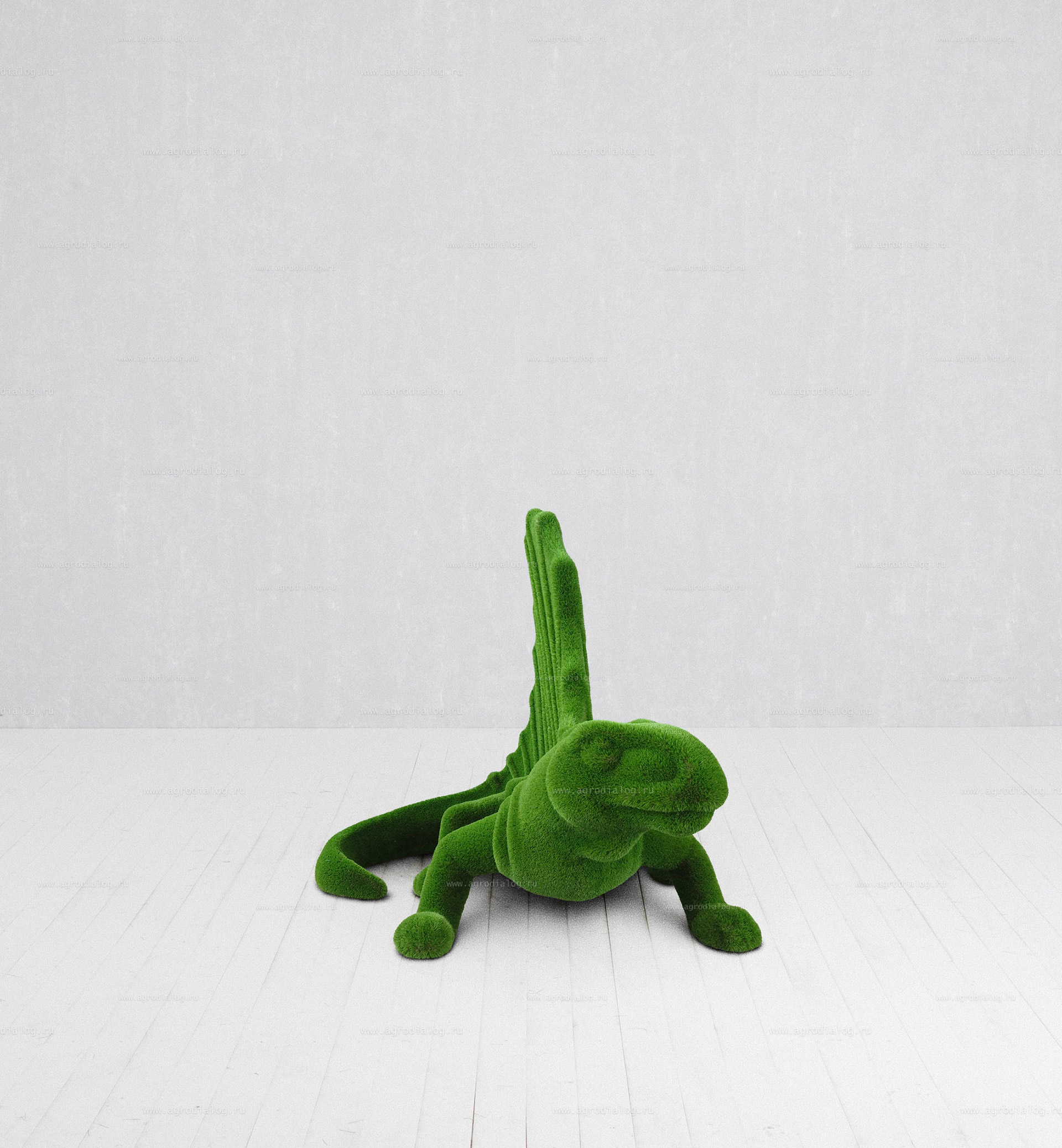 - Садовая фигура из искусственной травы «диметродон большой» станет прекрасным украшением в течение всего года, так как ей не страшны осадки и сезонные перемены погоды.