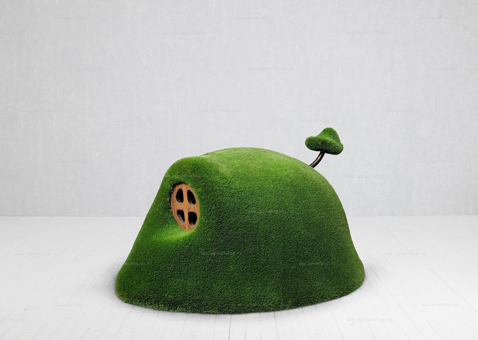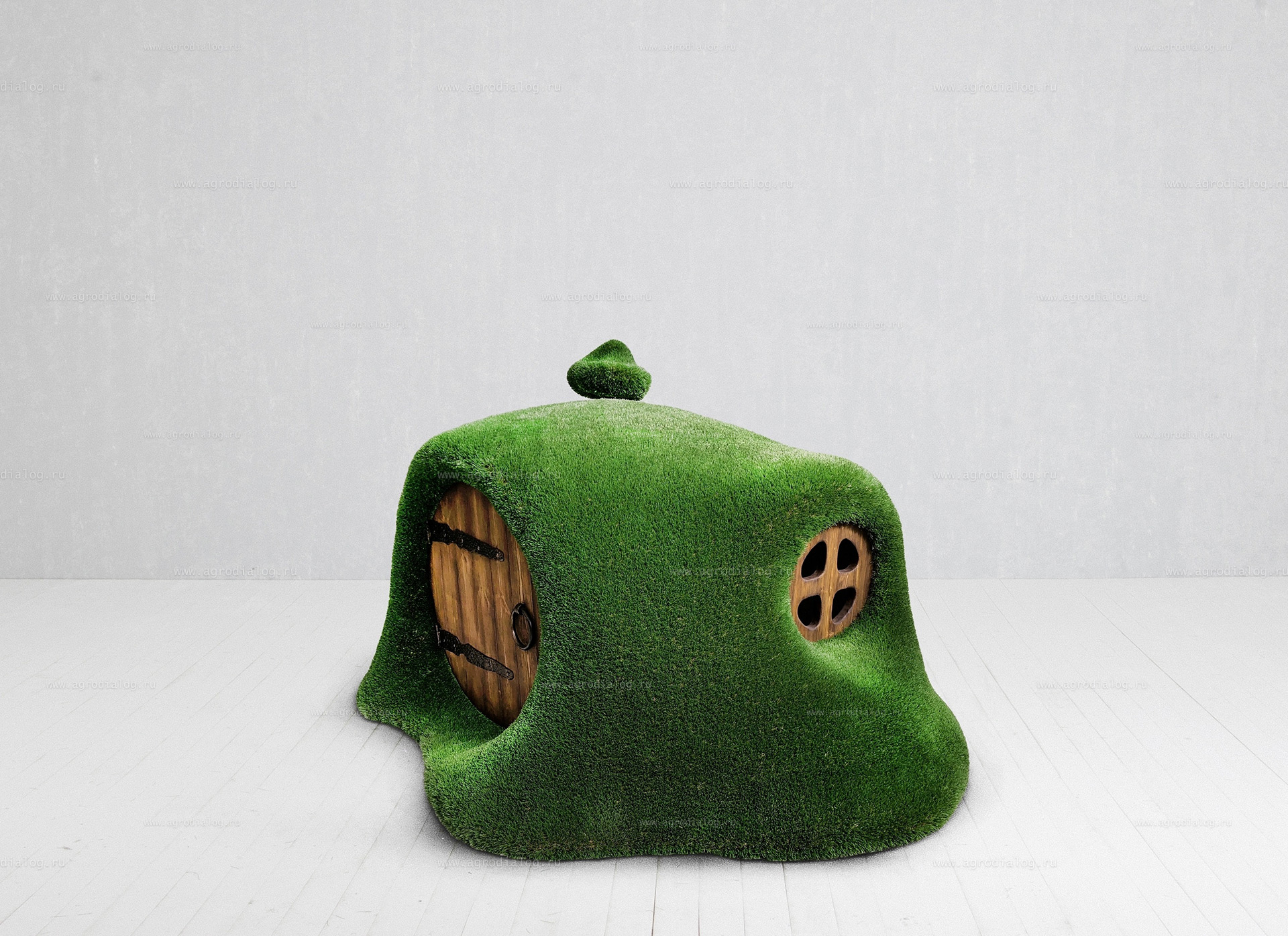 Для благоустройства вашего сада, базы отдыха или парка отлично подойдет садовая фигура «домик хоббита», с исполнением из искусственной травы премиального класса, сосны и стеклопластика.