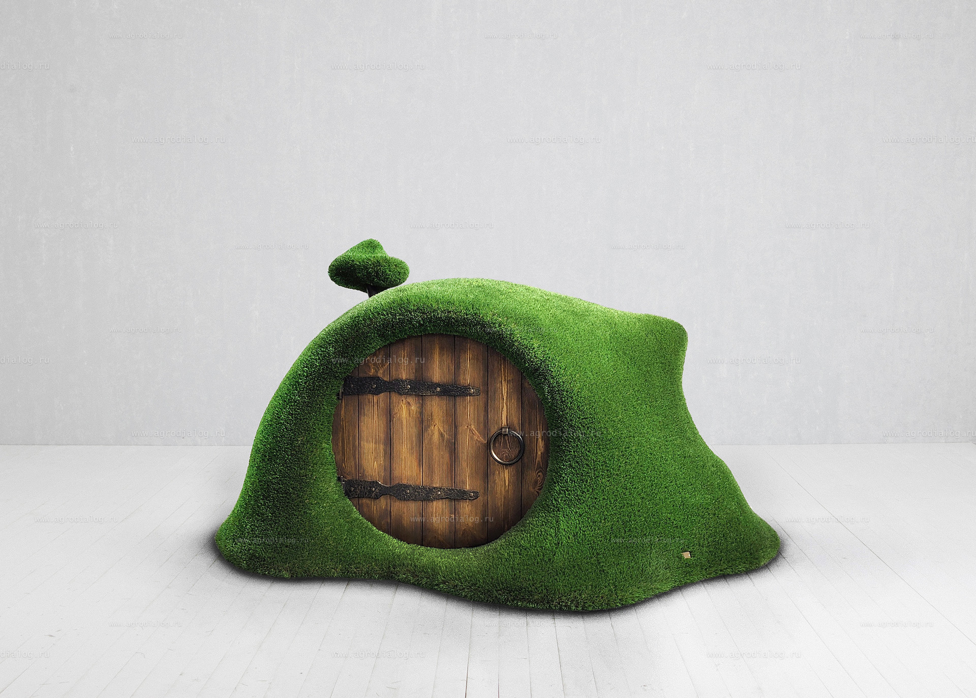 - Садовая фигура из искусственной травы «домик хоббита» станет прекрасным украшением в течение всего года, так как ей не страшны осадки и сезонные перемены погоды.