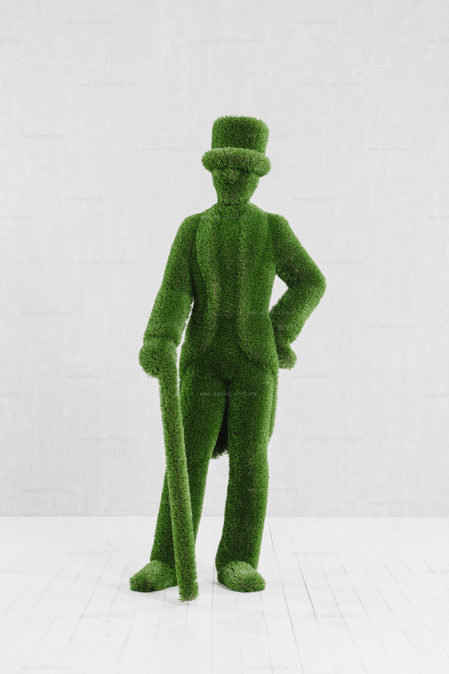 Для благоустройства вашего сада, базы отдыха или парка отлично подойдет садовая фигура «джентльмен», с исполнением из искусственной травы премиального класса и стеклопластика.