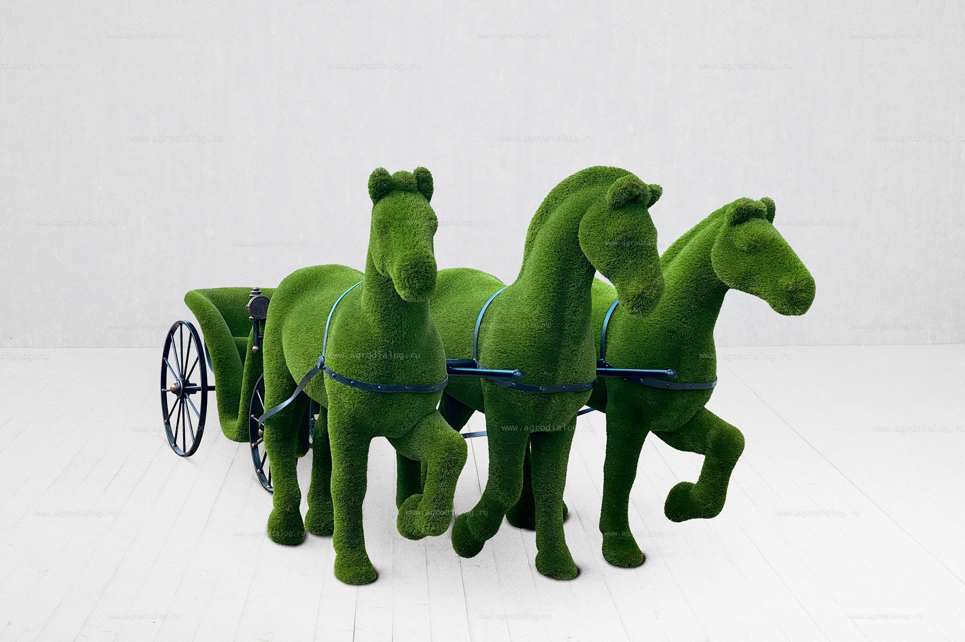 Садовая фигура из искусственной травы «Карета, запряженная тройкой лошадей»