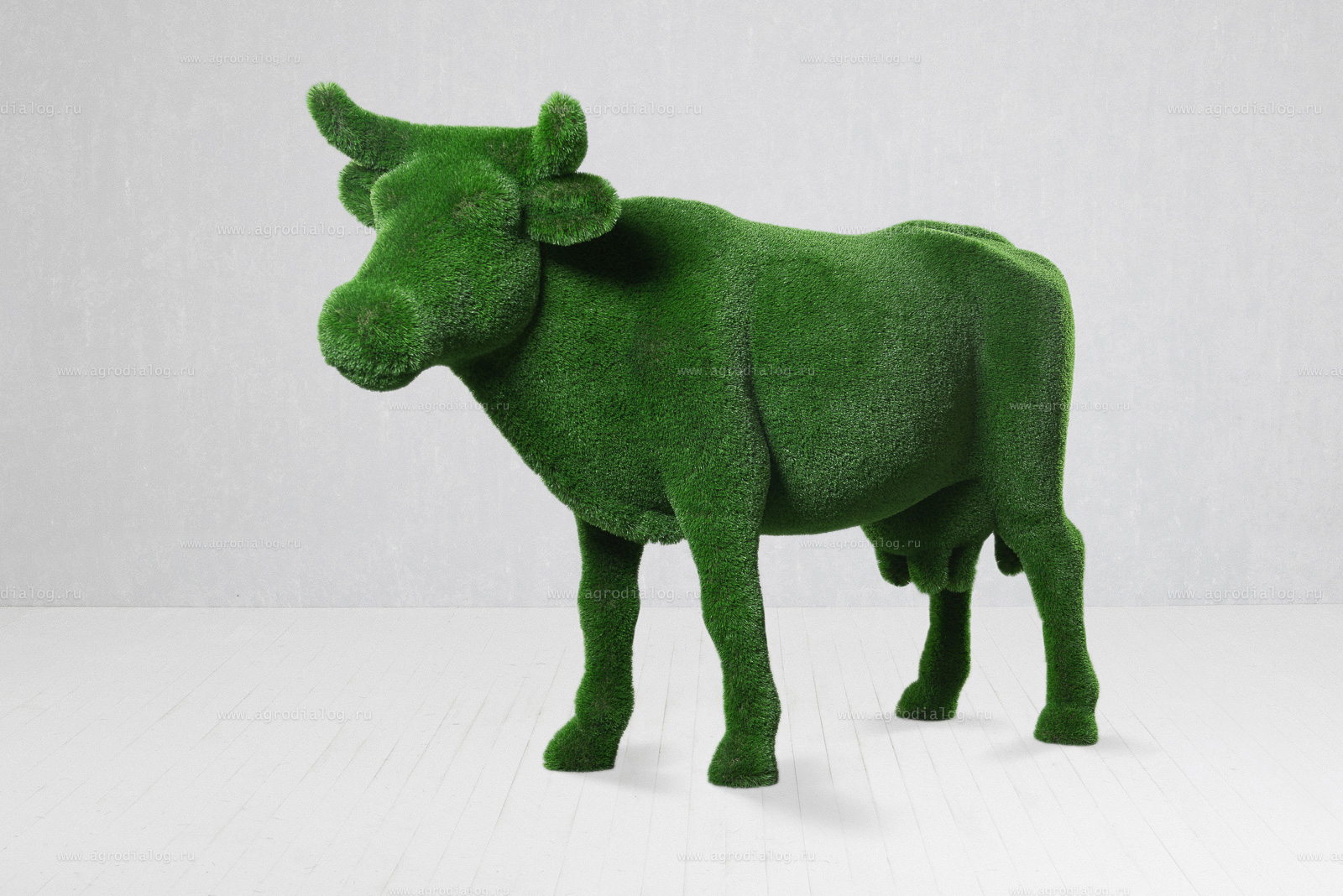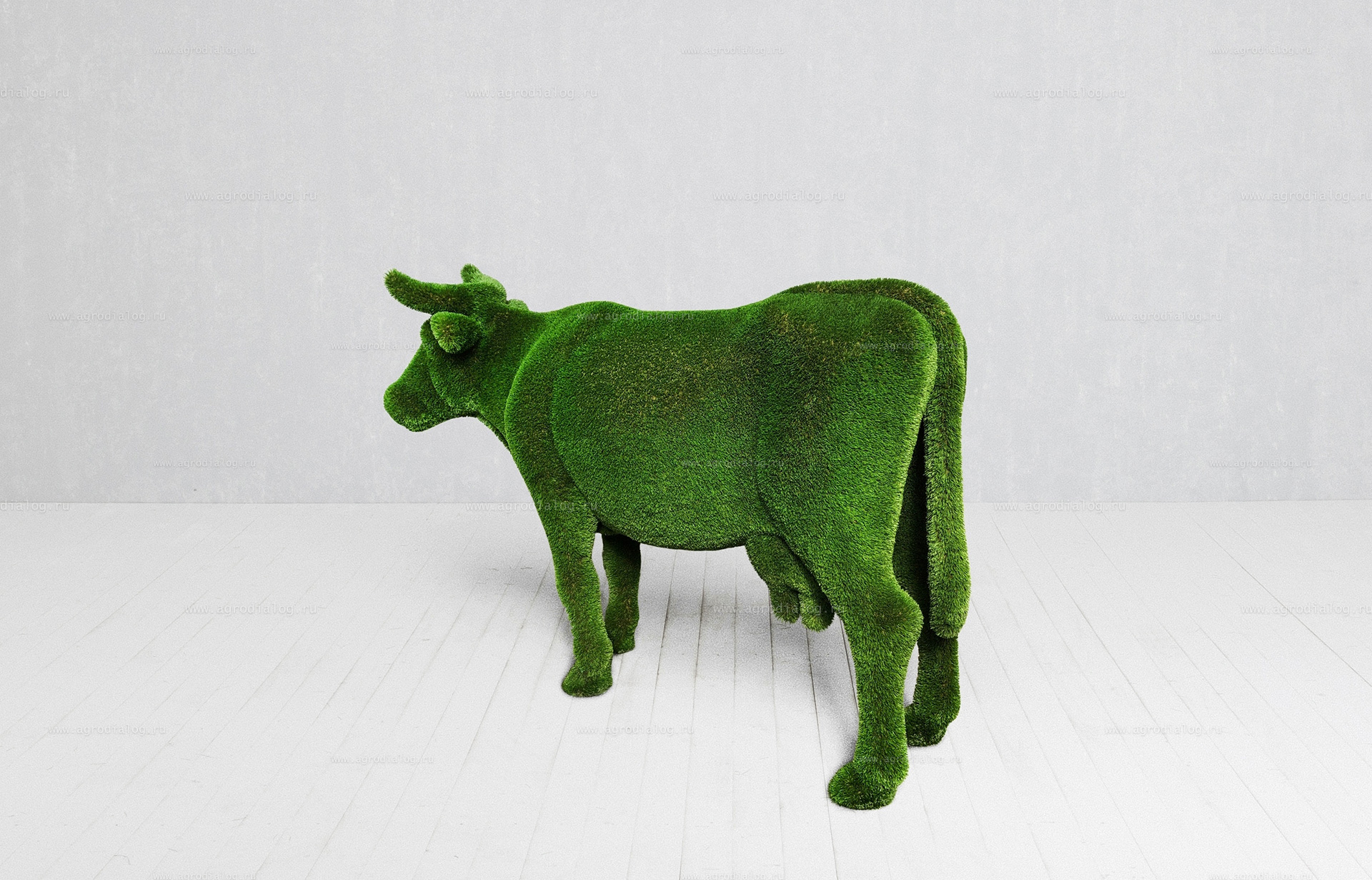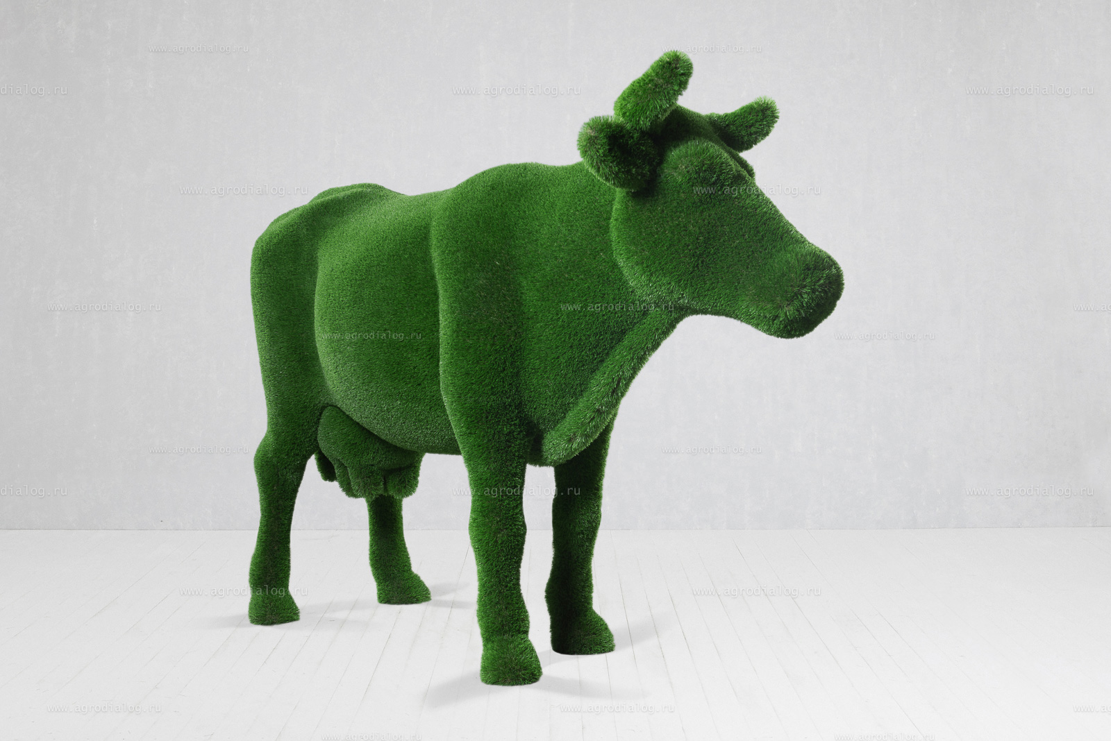 - Садовая фигура из искусственной травы «корова» станет прекрасным украшением в течение всего года, так как ей не страшны осадки и сезонные перемены погоды.