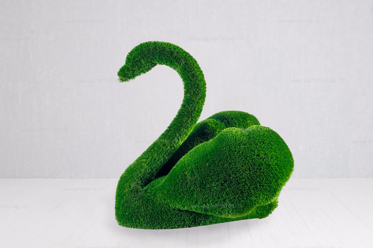 - Садовая фигура из искусственной травы «лебедь малый» станет прекрасным украшением в течение всего года, так как ей не страшны осадки и сезонные перемены погоды.