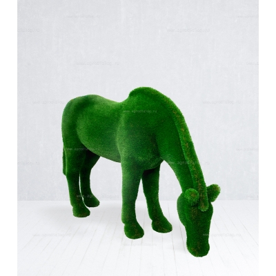 - Садовая фигура из искусственной травы «лошадь на лугу» станет прекрасным украшением в течение всего года, так как ей не страшны осадки и сезонные перемены погоды.