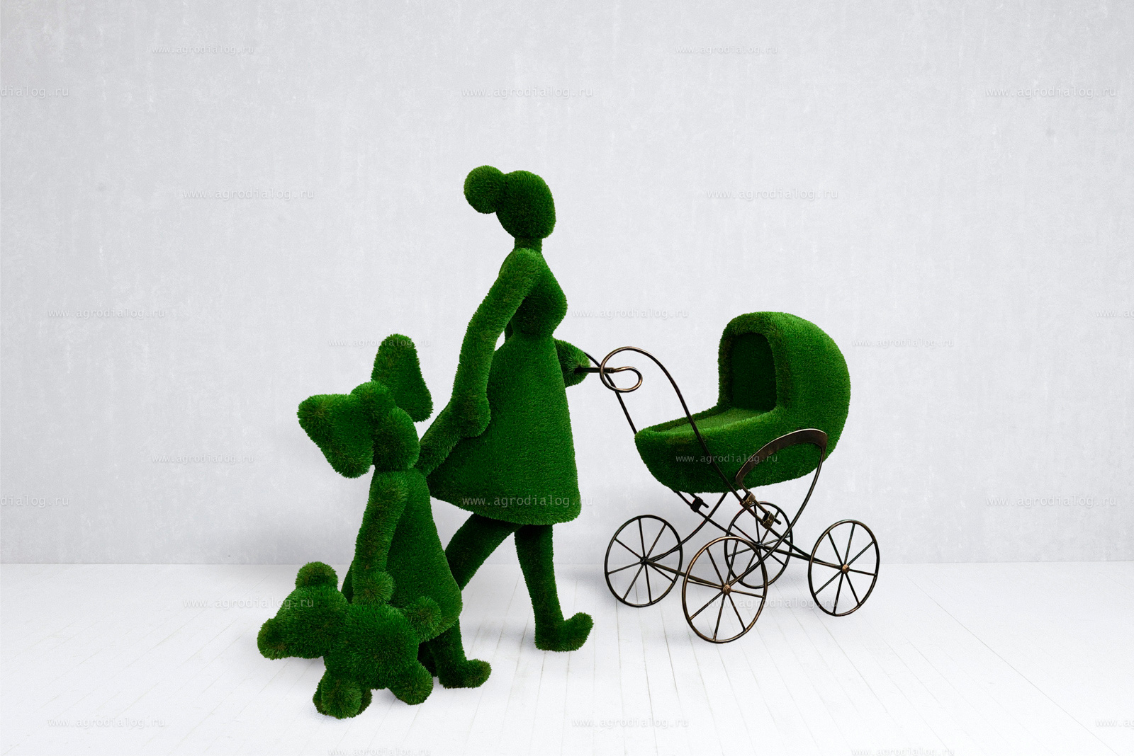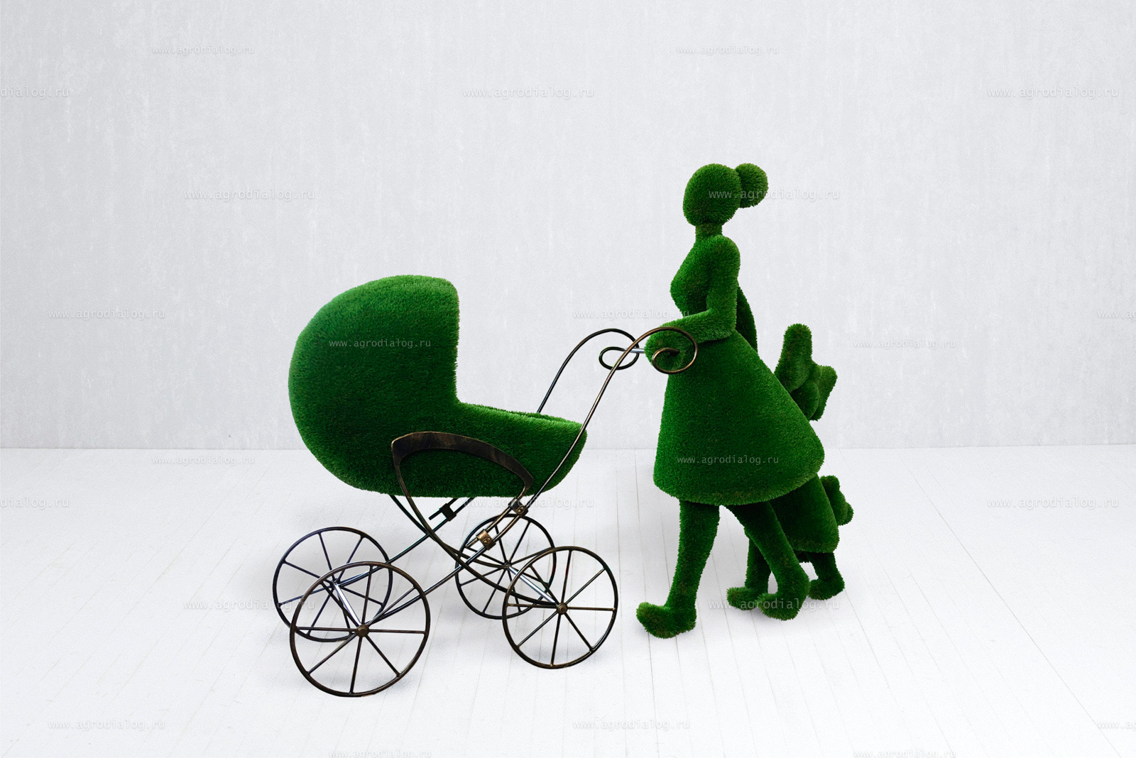 Для благоустройства вашего сада, базы отдыха или парка отлично подойдет садовая фигура «мама с детьми», с исполнением из искусственной травы премиального класса и стеклопластика.