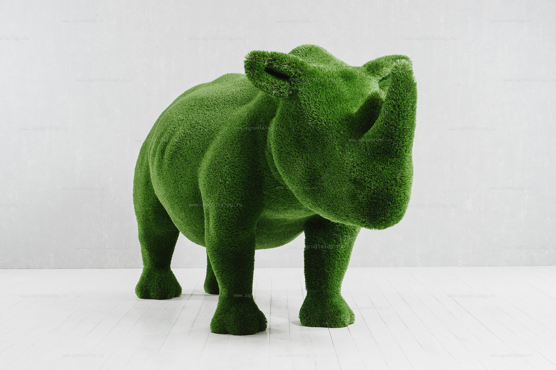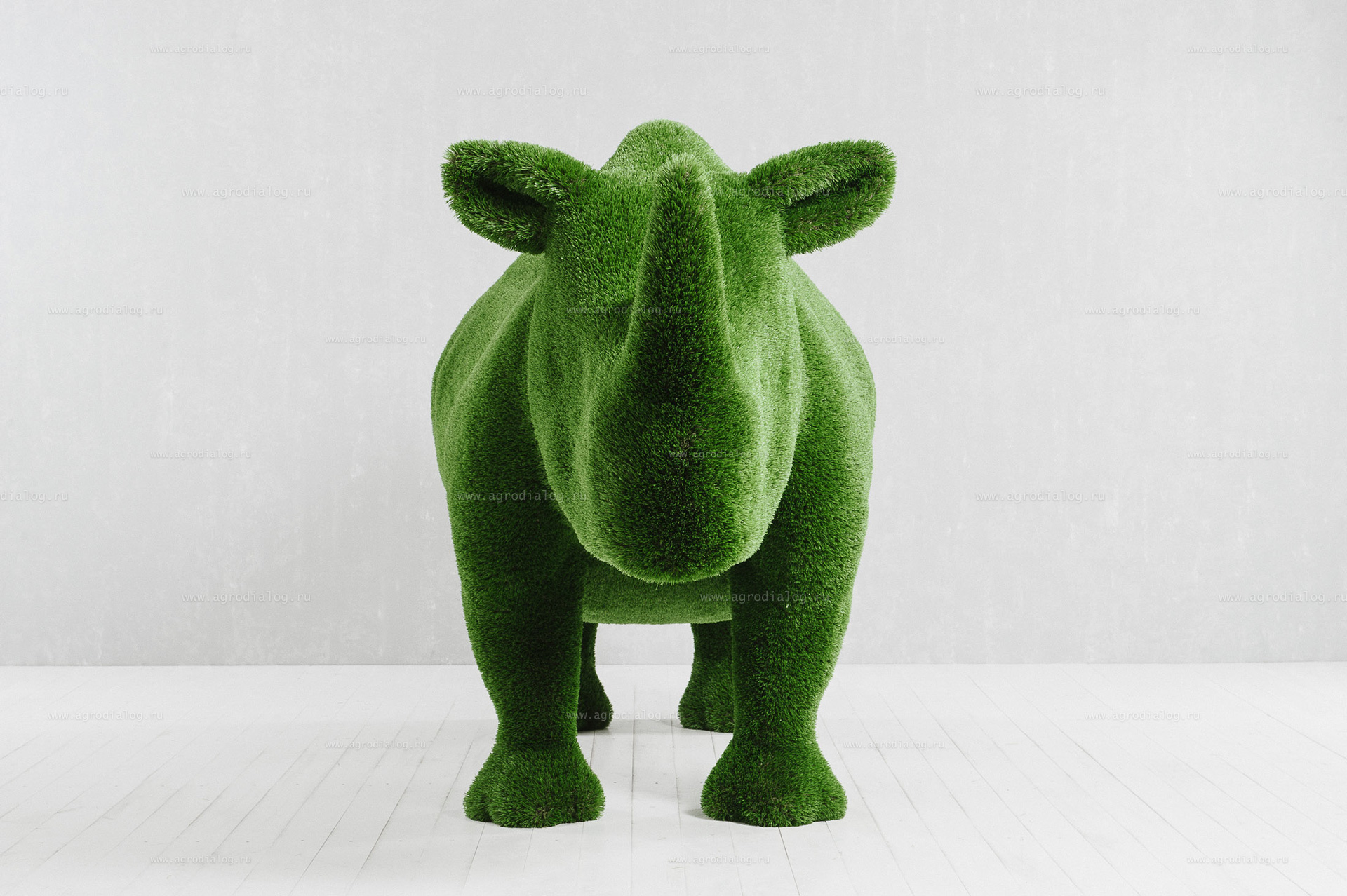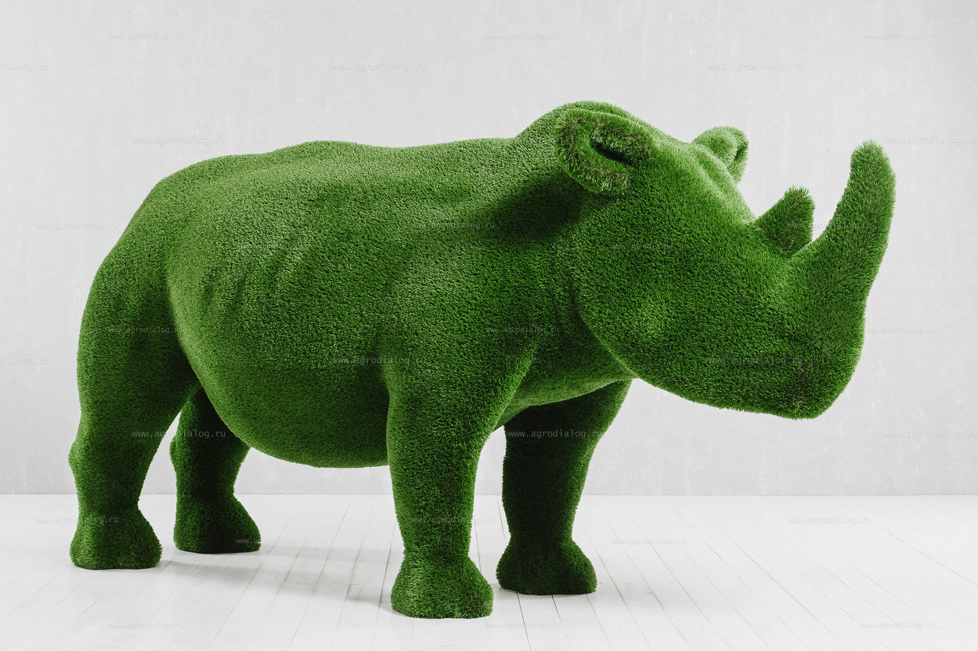 Для благоустройства вашего сада, базы отдыха или парка отлично подойдет садовая фигура «носорог», с исполнением из искусственной травы премиального класса и стеклопластика.
