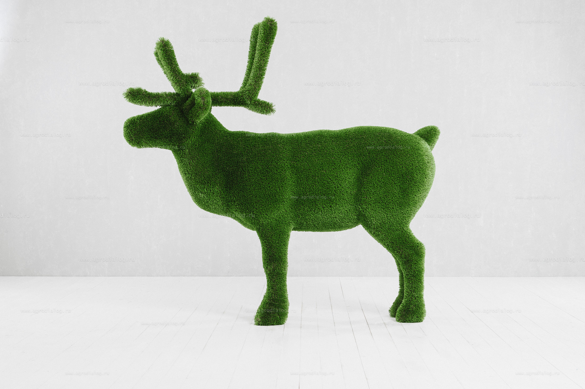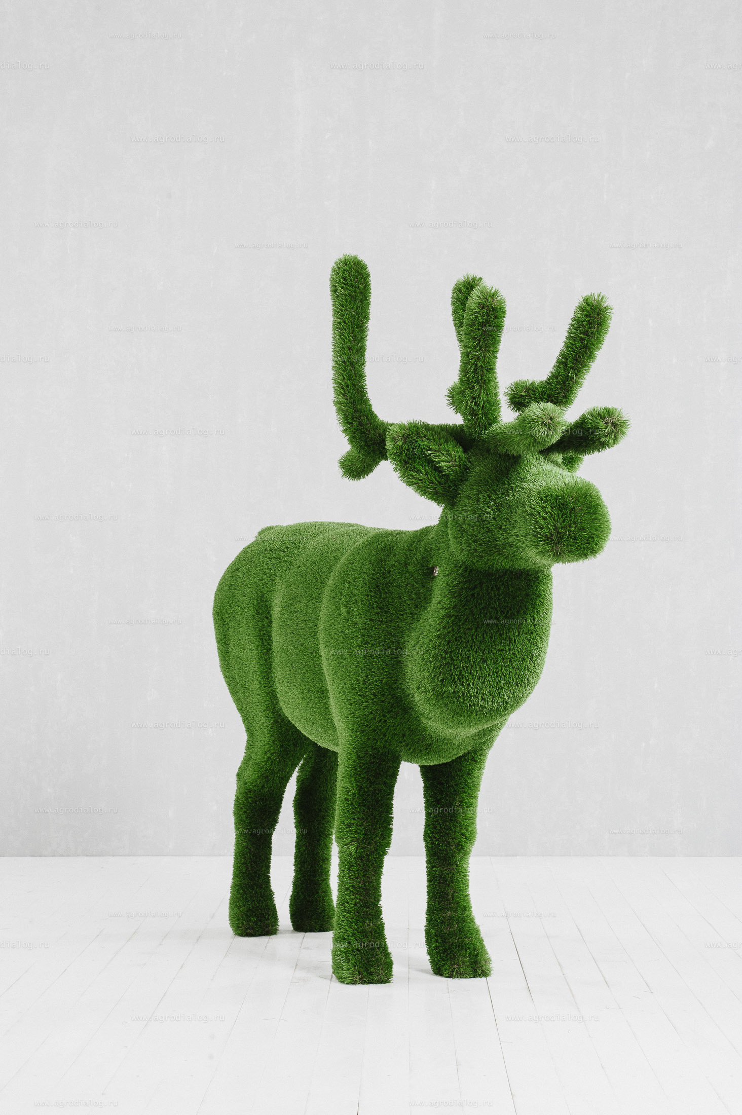 - Садовая фигура из искусственной травы «олень» станет прекрасным украшением в течение всего года, так как ей не страшны осадки и сезонные перемены погоды.