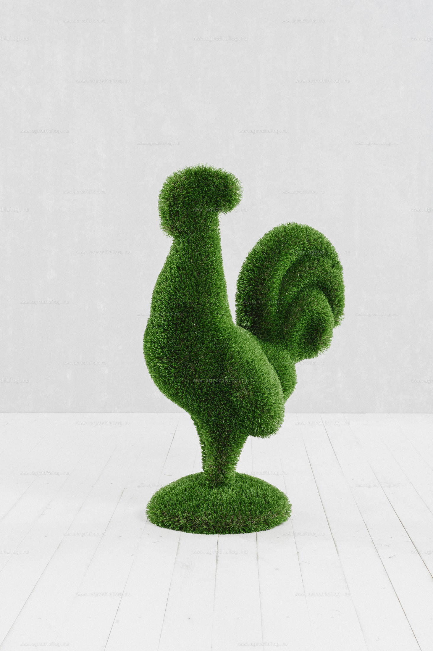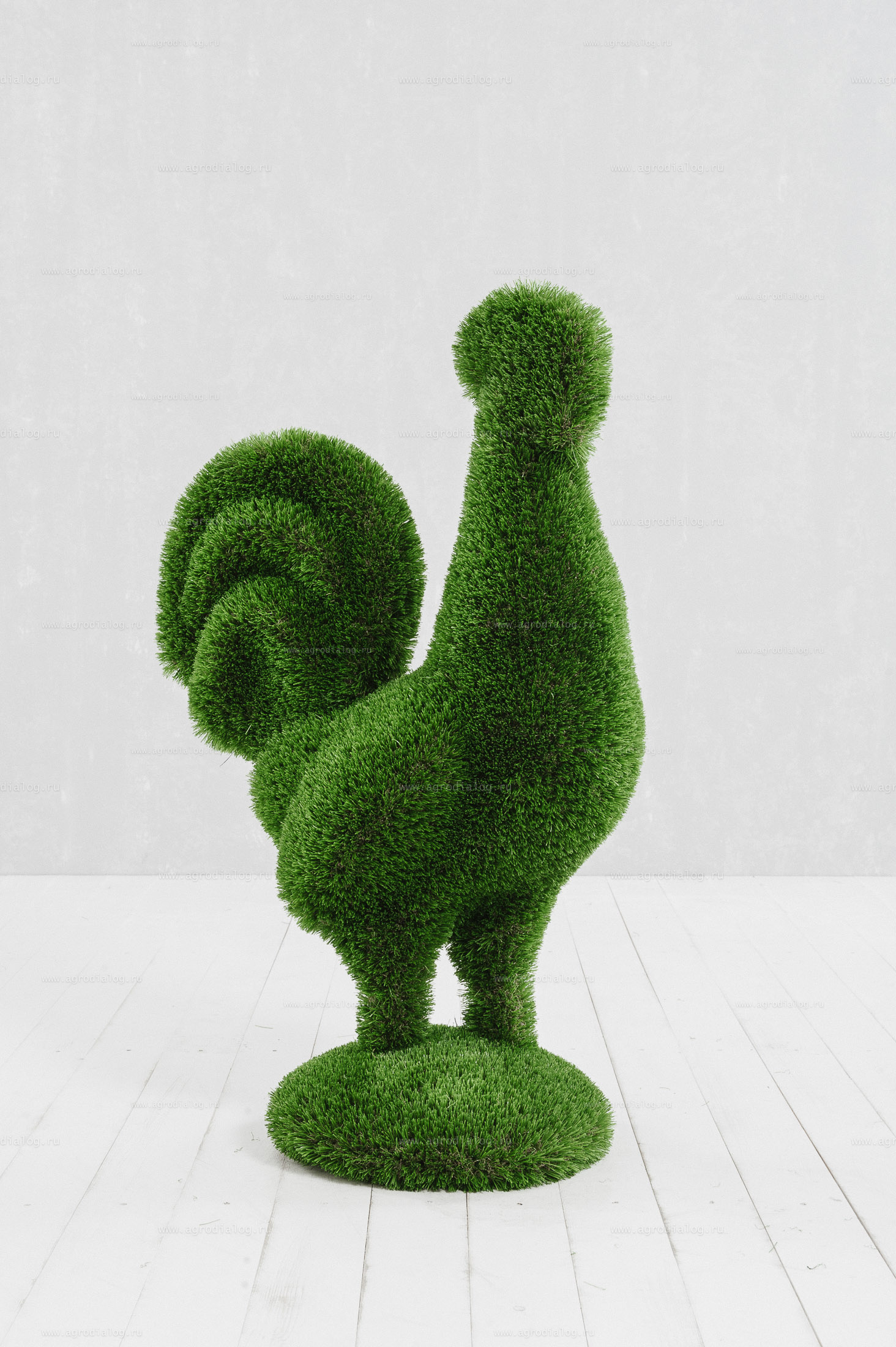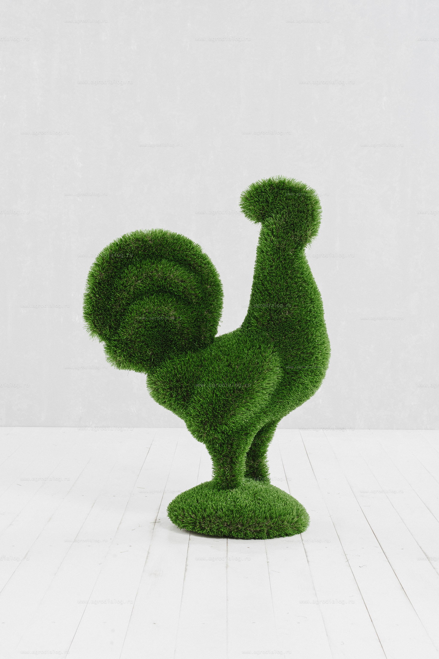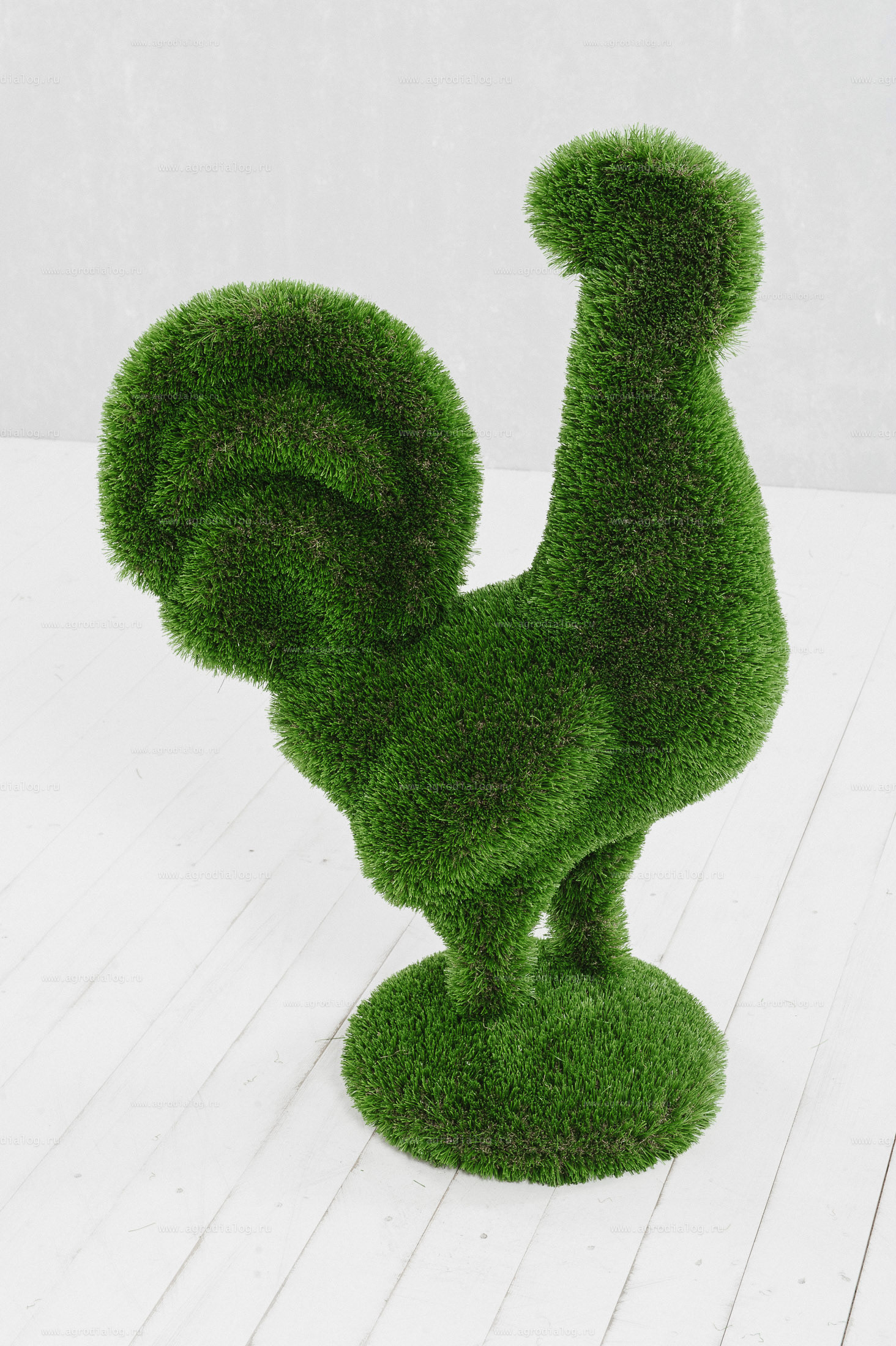 - Садовая фигура из искусственной травы «петух» станет прекрасным украшением в течение всего года, так как ей не страшны осадки и сезонные перемены погоды.