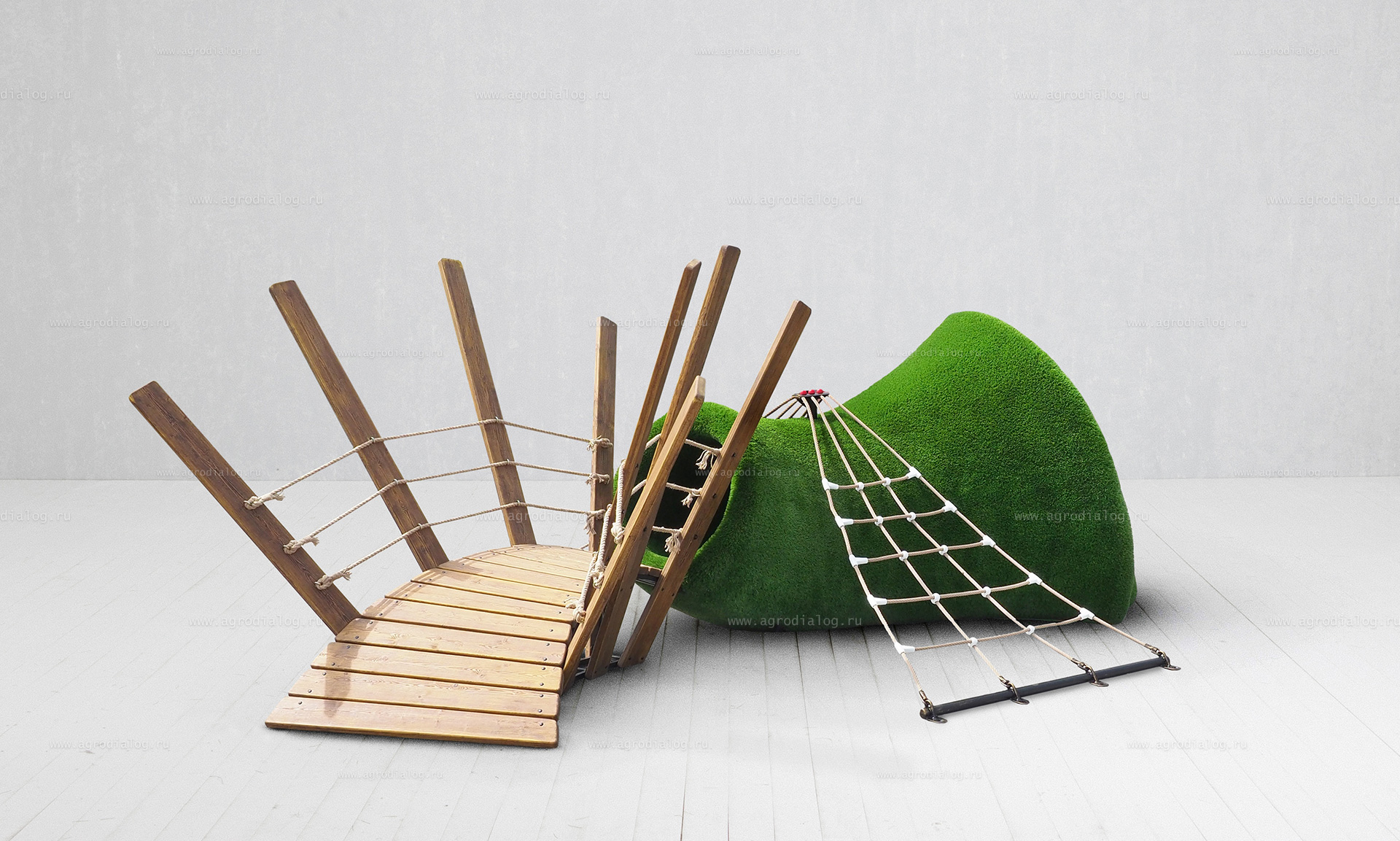 - стеклопластик / искусственный газон / дерево твердых пород / канат