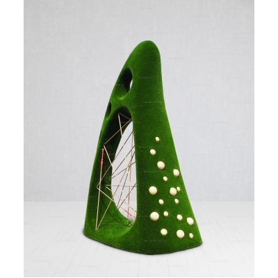 Для благоустройства вашего сада, базы отдыха или парка отлично подойдет садовая фигура «ракушка – канатная лестница», с исполнением из искусственной травы премиального класса, каната и стеклопластика.