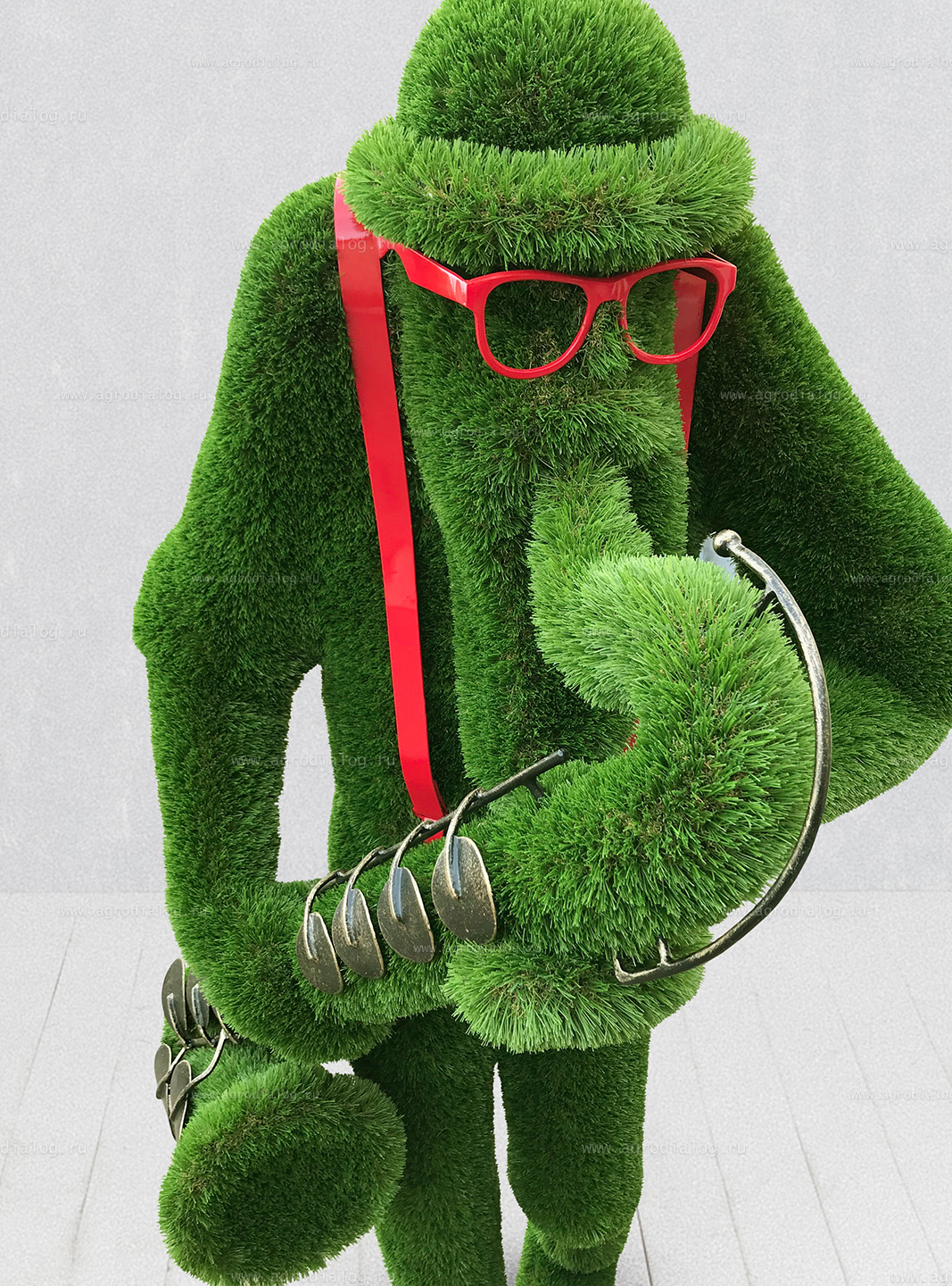 Для благоустройства вашего сада, базы отдыха или парка отлично подойдет садовая фигура «саксофонист», с исполнением из искусственной травы премиального класса и стеклопластика.