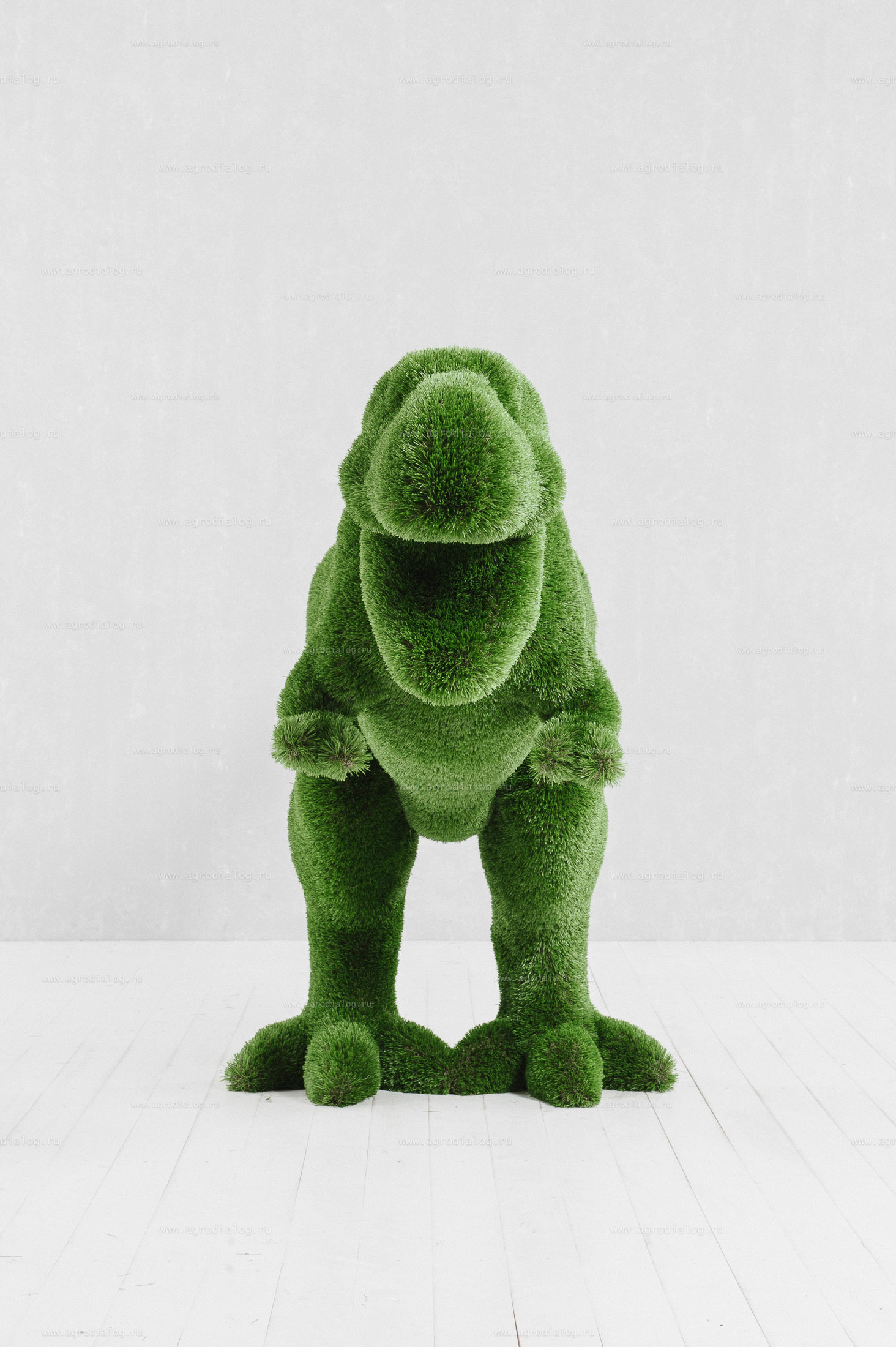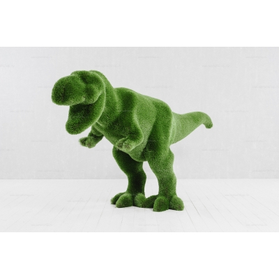 - Садовая фигура из искусственной травы «тираннозавр» станет прекрасным украшением в течение всего года, так как ей не страшны осадки и сезонные перемены погоды.