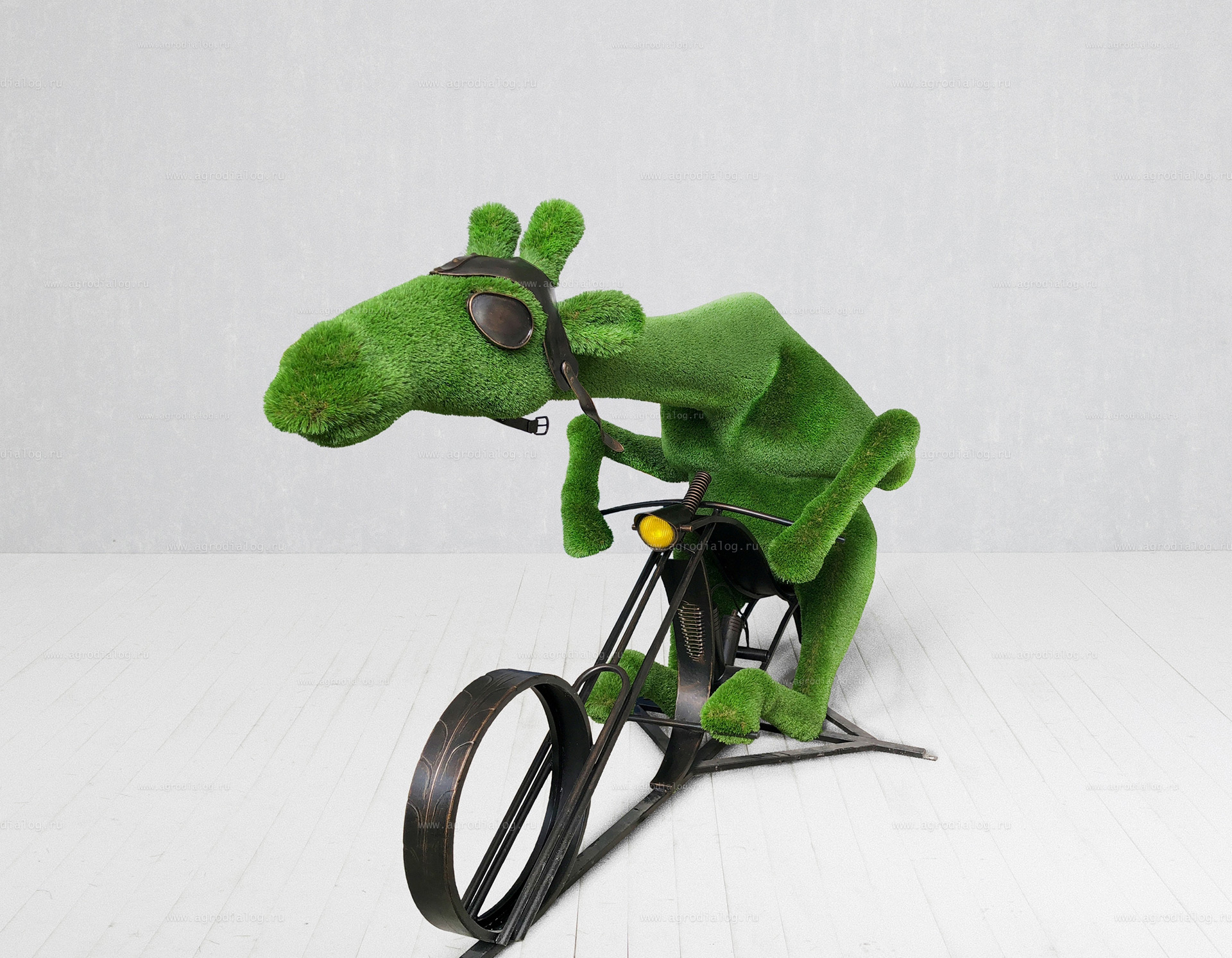 Для благоустройства вашего сада, базы отдыха или парка отлично подойдет садовая фигура «жираф-байкер», с исполнением из искусственной травы премиального класса и стеклопластика.