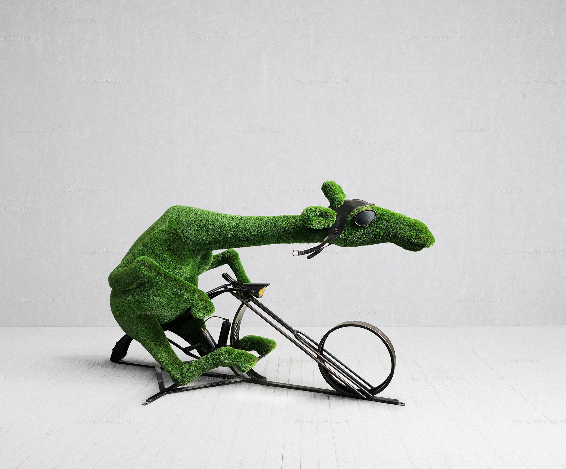 - Садовая фигура из искусственной травы «жираф-байкер» имеет небольшой вес, благодаря чему её легко перевозить, перемещать и монтировать.