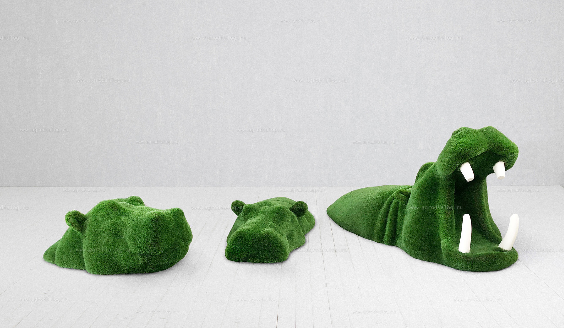 Для благоустройства вашего сада, базы отдыха или парка отлично подойдут садовые фигуры «бегемоты», с исполнением из искусственной травы премиального класса и стеклопластика.