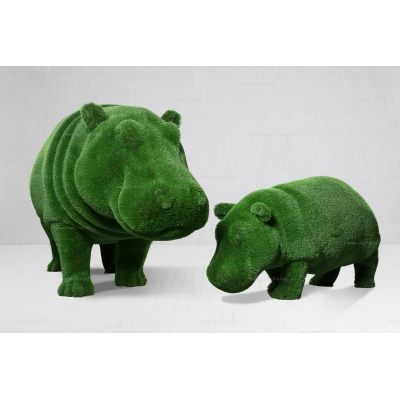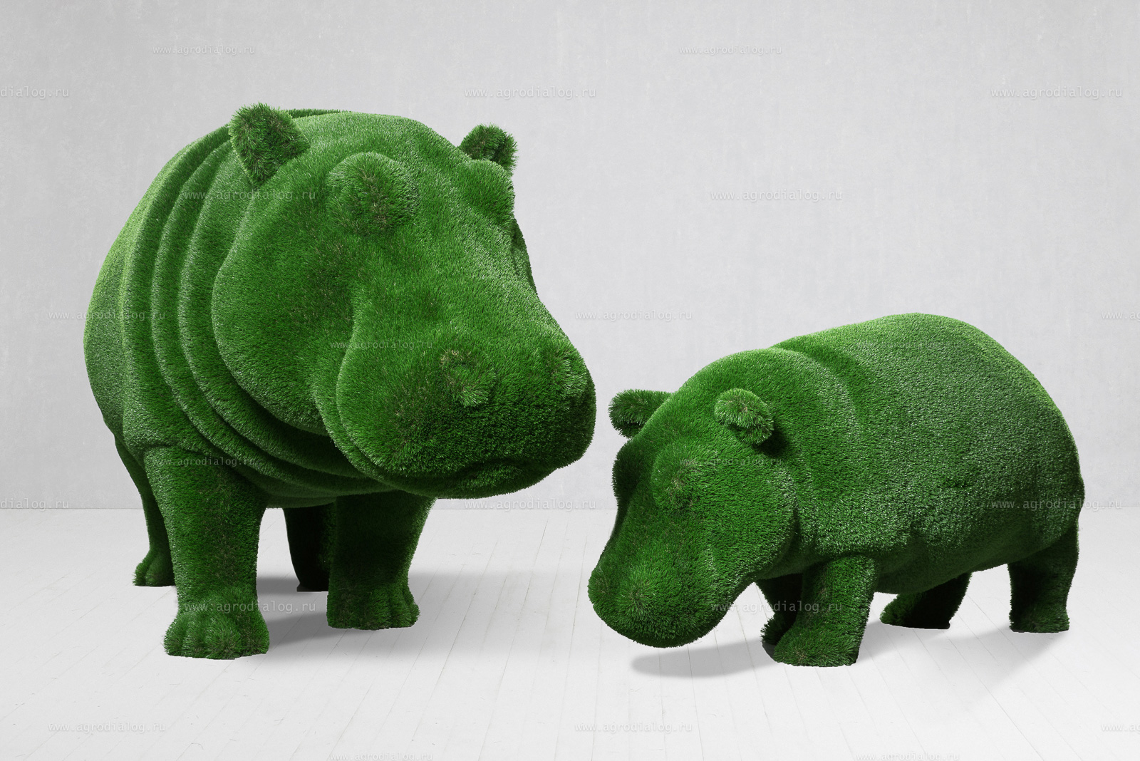 Для благоустройства вашего сада, базы отдыха или парка отлично подойдут садовые фигуры «два бегемота», с исполнением из искусственной травы премиального класса и стеклопластика.