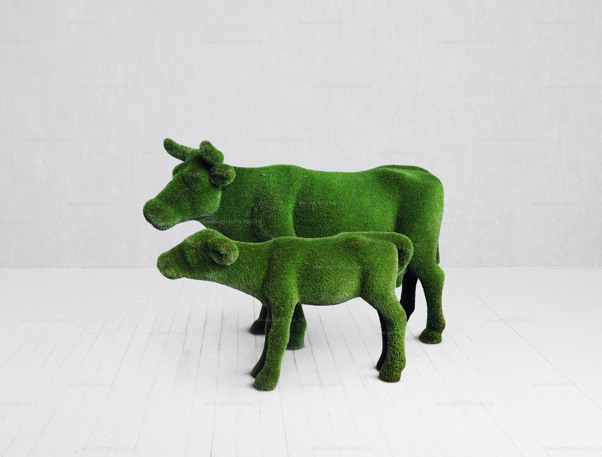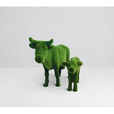 Для благоустройства вашего сада, базы отдыха или парка отлично подойдут садовые фигуры «корова с теленком», с исполнением из искусственной травы премиального класса и стеклопластика.
