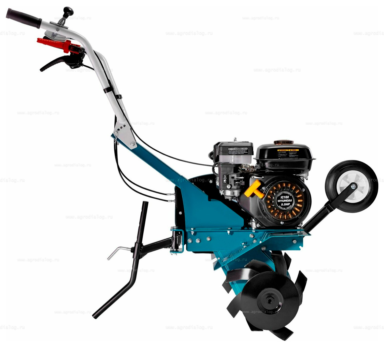 - Бензиновый культиватор Hyundai T 800 оснащен ограничительными боковыми дисками-кромкорезами для защиты посадок от вращающихся ножей культиватора.