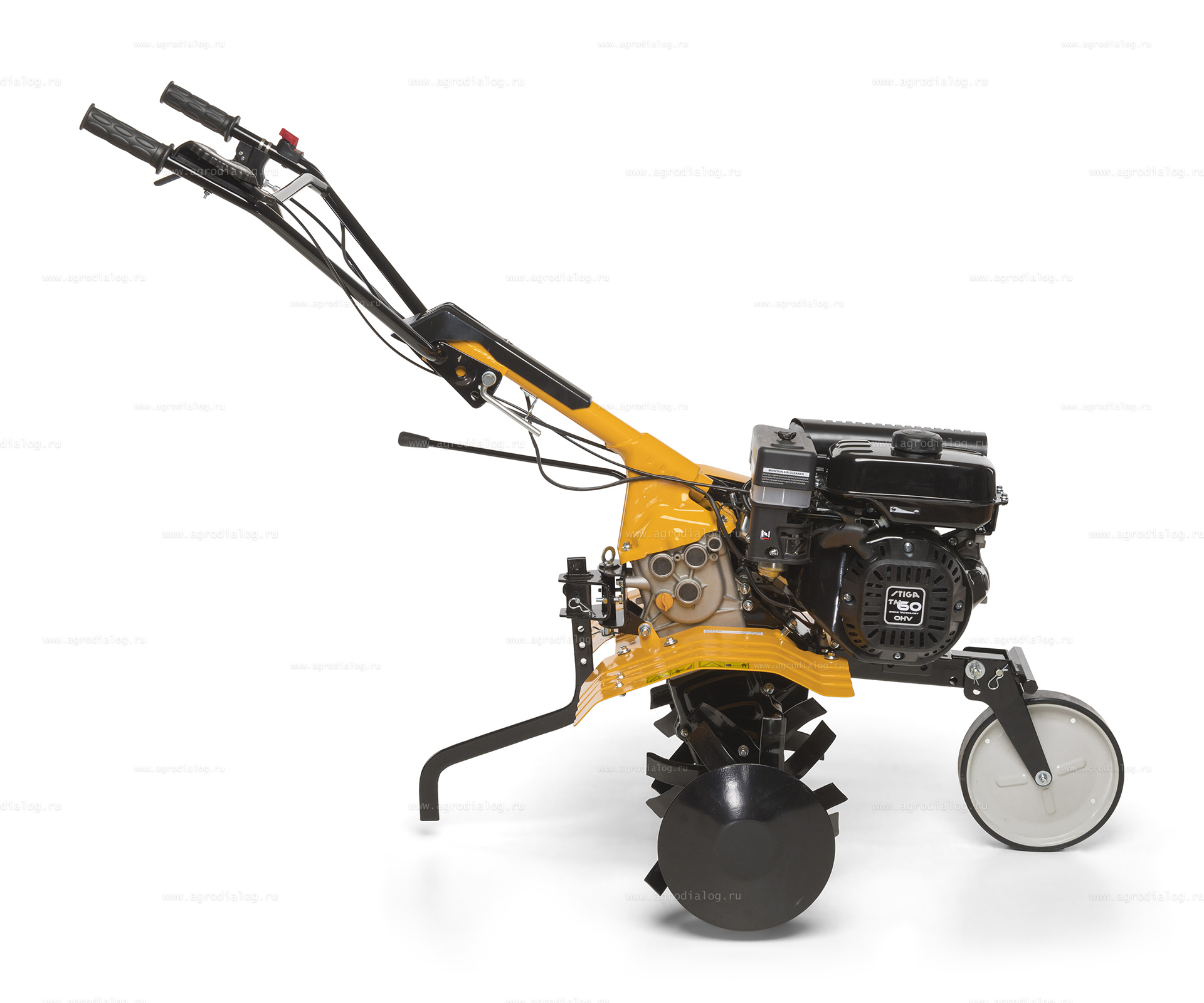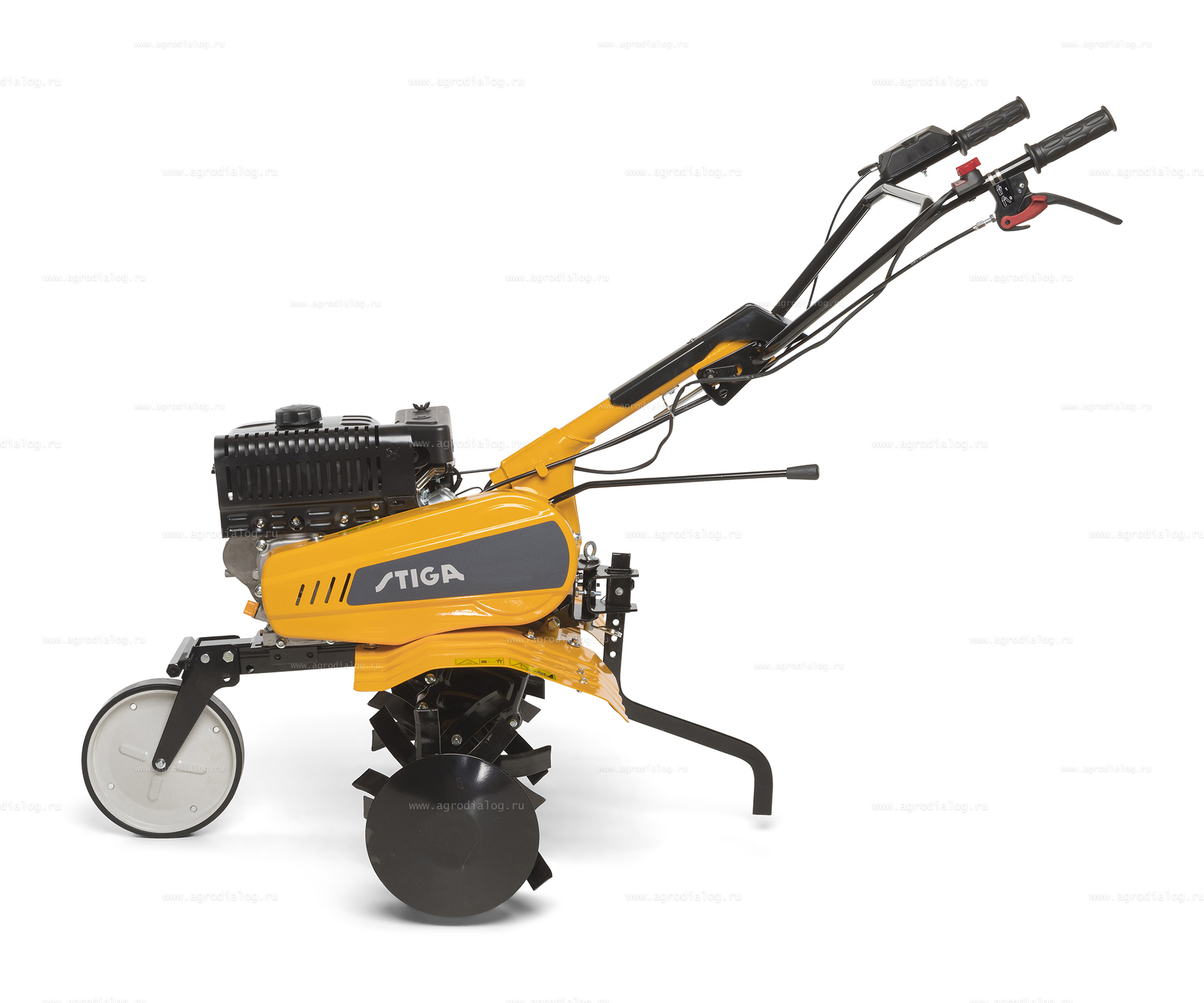 - Для удобства перемещения бензиновый культиватор Stiga SRC 685 RG снабжен откидным транспортировочным колесом.