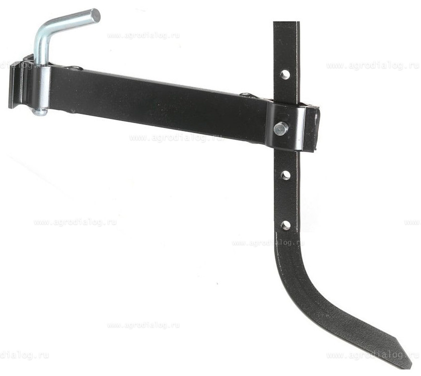 При движении культиватора регулируемая шпора (сошник) выполняет функцию тормозящего механизма – в зависимости от величины вертикального усилия оператора, прилагаемого на ручки управления, а соответственно и на сошник, регулируется скорость движения культиватора. Для регулирования положения сошника по высоте он имеет несколько отверстий для крепления, расположенных на разных расстояниях от верхнего конца. Вес: 2 кг. Данный товар приобретается только в комплекте с культиватором.