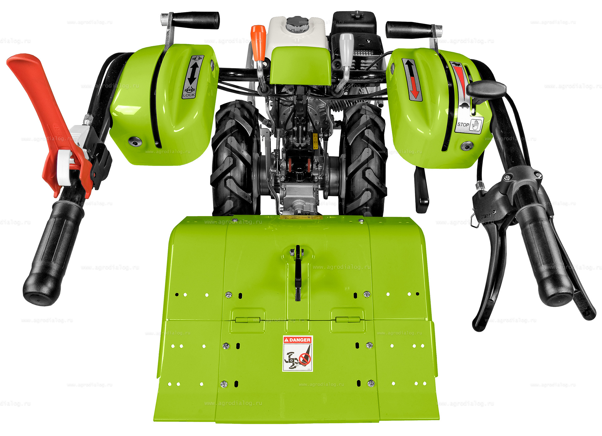 Мотоблок Grillo G 110 (Honda) относится к классу профессиональных мотоблоков и является идеальным решением для собственников территорий, которым требуется сочетание многофункциональности и высокого уровня эргономики на площадях до нескольких гектар. Разблокируемый дифференциал значительно упрощает работу при маневрировании. Виброизолированная рулевая колонка - виброизоляция предназначена для гашения толчков передающихся от мотоблока на рукоятку управления, что обеспечивает комфортную работу. Уникальная конструкция рукоятки позволяет выбрать самое удобное положение для пользователя, что снижает утомляемость и повышает производительность труда. Реверсивная рулевая колонка позволяет менять направление работы мотоблока с различным навесным оборудованием. Накладки на рукоятках из специальной резины исключают проскальзывание, делают управление культиватором более комфортным. Благодаря профессиональной многоскоростной трансмиссии мотоблок Grillo G 110 (Honda) справится с задачами любой сложности: убрать снег, подмести, скосить бурьян или газон, обработать почву, перевезти груз или заготовить сено. ВОМ и навесное оборудование автоматически отключается при включении заднего хода во избежание несчастных случаев. ВОМ имеет одну скорость - до 965 об/мин, независимо от скорости передвижения мотоблока. ВОМ оборудован быстроразъемной муфтой, что позволяет производить смену навесного оборудования в считанные секунды. Рычаг Motorstop - обеспечивает 100% безопасность во время работы. Как только оператор отпускает рукоятку, мотоблок Grillo G 110 (Honda) и навесное оборудование немедленно останавливаются. В комплекте капот и колеса 5.00-10 с высокими сцепными свойствами для удобства работы с различным навесным оборудованием и обеспечения лучшего сцепления с грунтом. Капот обеспечивает защиту двигателя от пыли и удара. Все компоненты, от самых простых до самых сложных - все изготавливается компанией Grillo в Италии с использованием лучших материалов и самых современных технологий, что позволяет постоянно добиваться высокого качества под 100% контролем. Мотоблоки компании Grillo окрашиваются двойным слоем электростатической порошковой краски. Сначала выполняются промывочная и подготовительная ванна, затем поверхность грунтуют и проводят термическую обработку, это лучшая основа для нанесения окрасочных слоёв. После второго слоя краски проводится дополнительная термическая обработка при температуре 190°С, которая обеспечивает твёрдость и блеск. При завершающих приёмочных испытаниях мотоблок Grillo G 110 (Honda) проверяется с включенным двигателем. Это ещё одна и заключительная гарантия высокого качества продукции.