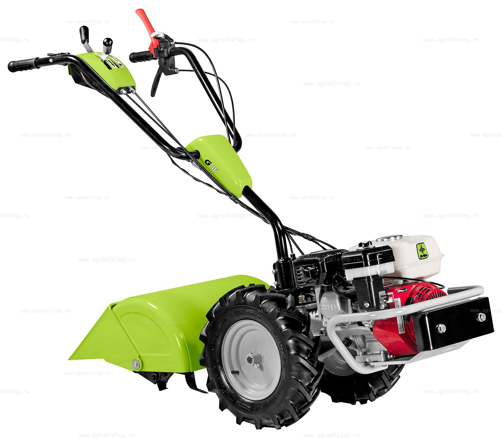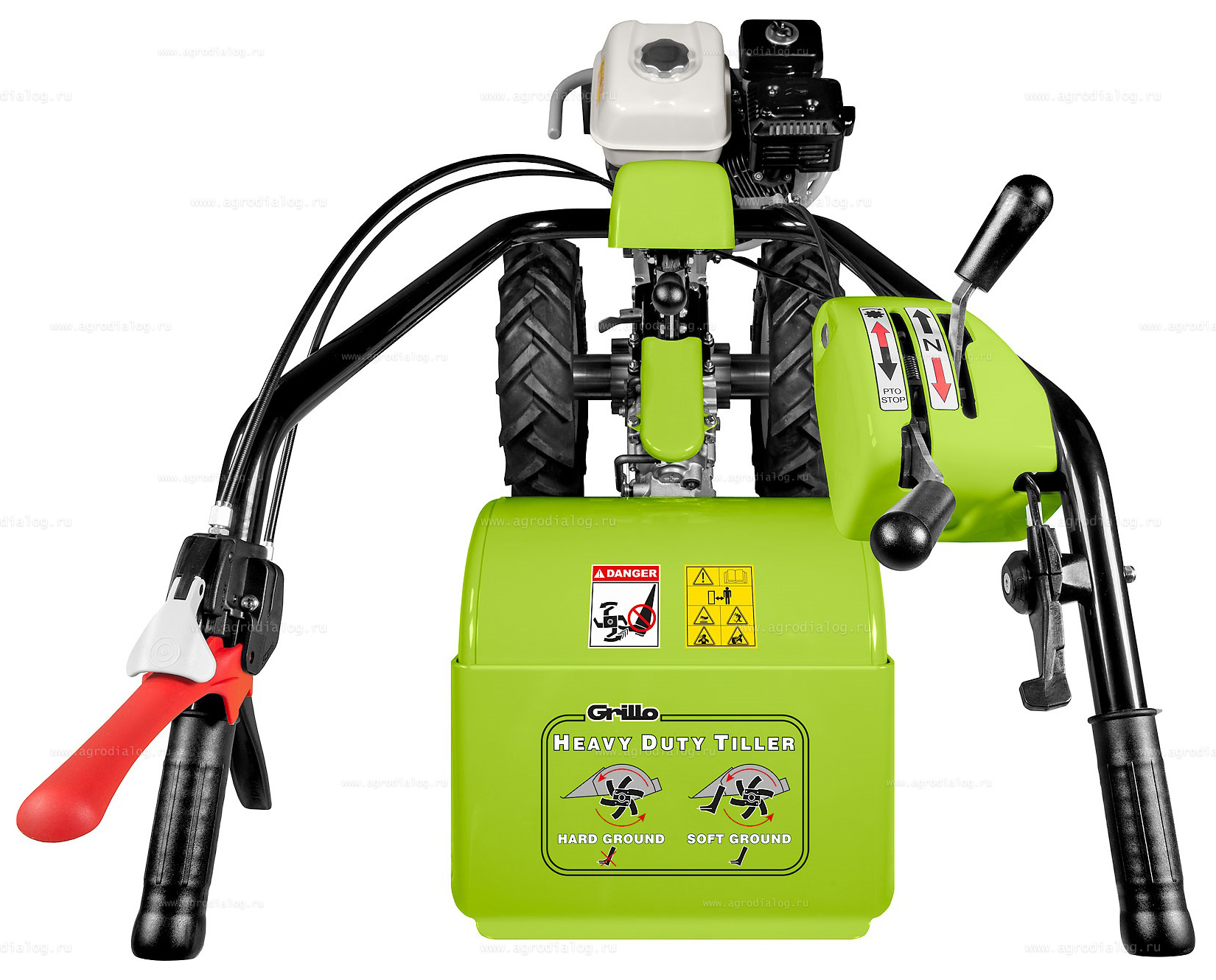 Мотоблок Grillo G 46 с фрезой с обратным вращением, особенно рекомендуется для твёрдой и труднообрабатываемой почвы, где классическая схема традиционного культиватора применяется с трудом. Мотыги вращаются в обратном направлении от ведущих колёс, обеспечивая сцепление с грунтом и позволяя увеличить агрессивность фрезерования. Имеет малые габариты, повышенную маневренность, низкий уровень вибрации и шума. В процессе его производства используются только высококачественные материалы и комплектующие, что делает данный мотоблок надежным, функциональным, практичным и безопасным. Мотоблок Grillo G 46 оборудован надежным двигателем Honda GX200 OHV. Направляющие ручки можно регулировать во всех направлениях: по высоте в соответствии с ростом оператора и по горизонтали для того, чтобы оператор мог двигаться в стороне от обрабатываемого участка и не вытаптывать вспаханную землю. Все компоненты, от самых простых до самых сложных - все изготавливается компанией Grillo в Италии с использованием лучших материалов и самых современных технологий, что позволяет постоянно добиваться высокого качества под 100% контролем. Мотоблоки компании Grillo окрашиваются двойным слоем электростатической порошковой краски. Сначала выполняются промывочная и подготовительная ванна, затем поверхность грунтуют и проводят термическую обработку, это лучшая основа для нанесения окрасочных слоёв. После второго слоя краски проводится дополнительная термическая обработка при температуре 190°С, которая обеспечивает твёрдость и блеск. При завершающих приёмочных испытаниях мотоблок Grillo G 46 проверяется с включенным двигателем. Это ещё одна и заключительная гарантия высокого качества продукции.