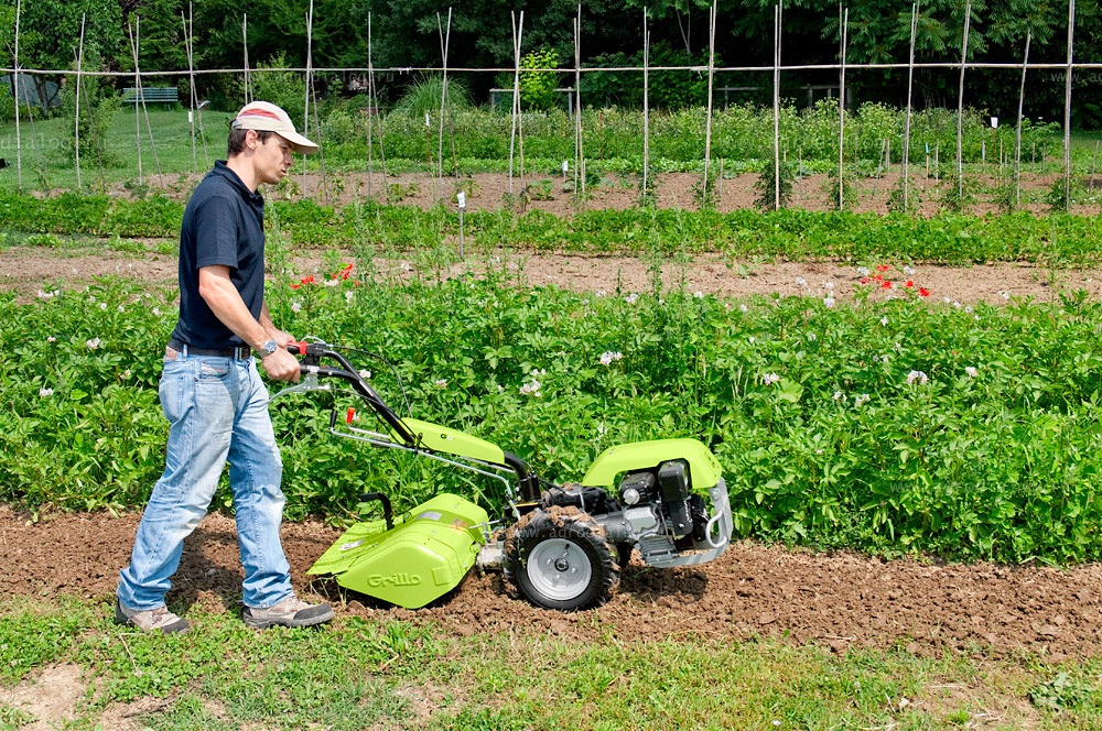 Мотоблок Grillo G 55 (Honda) относится к классу профессиональных мотоблоков и является идеальным решением для круглогодичного ухода за территориями. Специальная порошковая окраска защитных кожухов сохранит внешний вид мотоблока в течение длительного времени. Мотоблок Grillo G 55 оборудован надежным японским двигателем Honda GX200 OHV. Виброизолированная рулевая колонка - виброизоляция предназначена для гашения толчков передающихся от мотоблока на рукоятку управления, что обеспечивает комфортную работу. Уникальная конструкция рукоятки позволяет выбрать самое удобное положение для пользователя, что снижает утомляемость и повышает производительность труда. Реверсивная рулевая колонка позволяет менять направление работы мотоблока с различным навесным оборудованием. Накладки на рукоятках из специальной резины исключают проскальзывание, делают управление культиватором более комфортным. Мотоблок Grillo G 55 (Honda) оснащен независимым валом отбора мощности и профессиональной трансмиссией с 4 скоростями, позволяющей применять на одном силовом агрегате до 10 типов различного навесного оборудования. ВОМ и навесное оборудование автоматически отключается при включении заднего хода во избежание несчастных случаев. ВОМ имеет одну скорость - до 965 об/мин, независимо от скорости передвижения мотоблока. ВОМ оборудован быстроразъемной муфтой, что позволяет производить смену навесного оборудования в считанные секунды. Благодаря профессиональной многоскоростной трансмиссии мотоблок справится с задачами любой сложности: убрать снег, подмести, скосить бурьян или газон, обработать почву, перевезти груз или заготовить сено. В комплекте капот и колеса 4.00-8 с высокими сцепными свойствами для удобства работы с различным навесным оборудованием и обеспечения лучшего сцепления с грунтом. Капот обеспечивает защиту двигателя от пыли и удара. Все компоненты, от самых простых до самых сложных - все изготавливается компанией Grillo в Италии с использованием лучших материалов и самых современных технологий, что позволяет постоянно добиваться высокого качества под 100% контролем. Мотоблоки компании Grillo окрашиваются двойным слоем электростатической порошковой краски. Сначала выполняются промывочная и подготовительная ванна, затем поверхность грунтуют и проводят термическую обработку, это лучшая основа для нанесения окрасочных слоёв. После второго слоя краски проводится дополнительная термическая обработка при температуре 190°С, которая обеспечивает твёрдость и блеск. При завершающих приёмочных испытаниях мотоблок Grillo G 55 (Honda) проверяется с включенным двигателем. Это ещё одна и заключительная гарантия высокого качества продукции.
