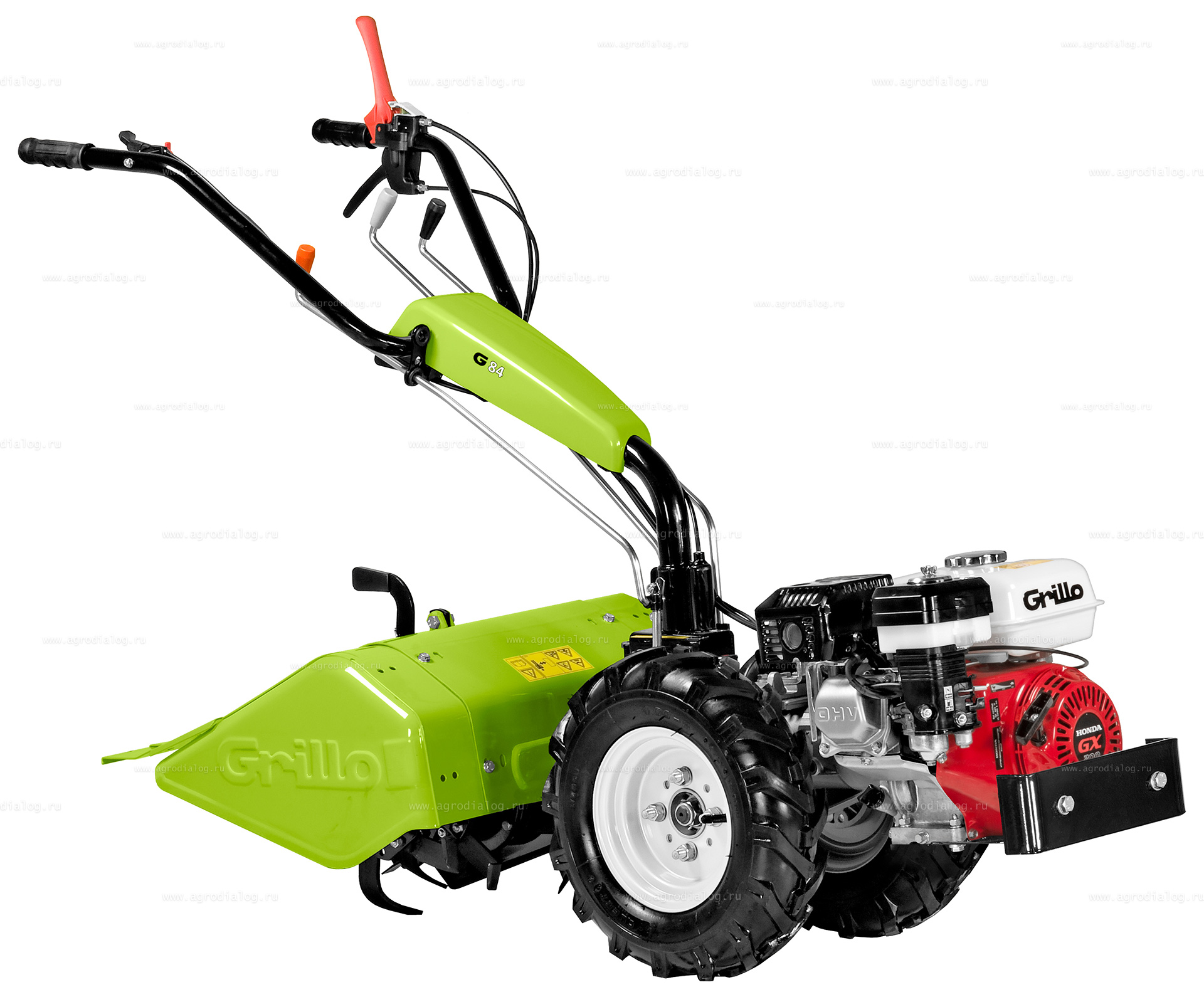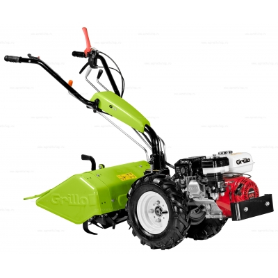 Мотоблок Grillo G 84 относится к классу профессиональных мотоблоков и является идеальным решением для собственников территорий, которым требуется сочетание многофункциональности и высокого уровня эргономики на площадях до нескольких гектар. Мощный двигатель GX200 OHV объемом 196 куб. см. предназначен для длительной работы. Виброизолированная рулевая колонка - виброизоляция предназначена для гашения толчков передающихся от мотоблока на рукоятку управления, что обеспечивает комфортную работу. Уникальная конструкция рукоятки позволяет выбрать самое удобное положение для пользователя, что снижает утомляемость и повышает производительность труда. Реверсивная рулевая колонка позволяет менять направление работы мотоблока с различным навесным оборудованием. Накладки на рукоятках из специальной резины исключают проскальзывание, делают управление культиватором более комфортным. Благодаря профессиональной многоскоростной трансмиссии мотоблок Grillo G 84 справится с задачами любой сложности: убрать снег, подмести, скосить бурьян или газон, обработать почву, перевезти груз или заготовить сено. ВОМ и навесное оборудование автоматически отключается при включении заднего хода во избежание несчастных случаев. ВОМ имеет одну скорость - до 965 об/мин, независимо от скорости передвижения мотоблока. ВОМ оборудован быстроразъемной муфтой, что позволяет производить смену навесного оборудования в считанные секунды. Рычаг Motorstop - обеспечивает 100% безопасность во время работы. Как только оператор отпускает рукоятку, мотоблок Grillo G 84 и навесное оборудование немедленно останавливаются. В комплекте капот и колеса 4.00-8 с высокими сцепными свойствами для удобства работы с различным навесным оборудованием и обеспечения лучшего сцепления с грунтом. Капот обеспечивает защиту двигателя от пыли и удара. Все компоненты, от самых простых до самых сложных - все изготавливается компанией Grillo в Италии с использованием лучших материалов и самых современных технологий, что позволяет постоянно добиваться высокого качества под 100% контролем. Мотоблоки компании Grillo окрашиваются двойным слоем электростатической порошковой краски. Сначала выполняются промывочная и подготовительная ванна, затем поверхность грунтуют и проводят термическую обработку, это лучшая основа для нанесения окрасочных слоёв. После второго слоя краски проводится дополнительная термическая обработка при температуре 190°С, которая обеспечивает твёрдость и блеск. При завершающих приёмочных испытаниях мотоблок Grillo G 84 проверяется с включенным двигателем. Это ещё одна и заключительная гарантия высокого качества продукции.