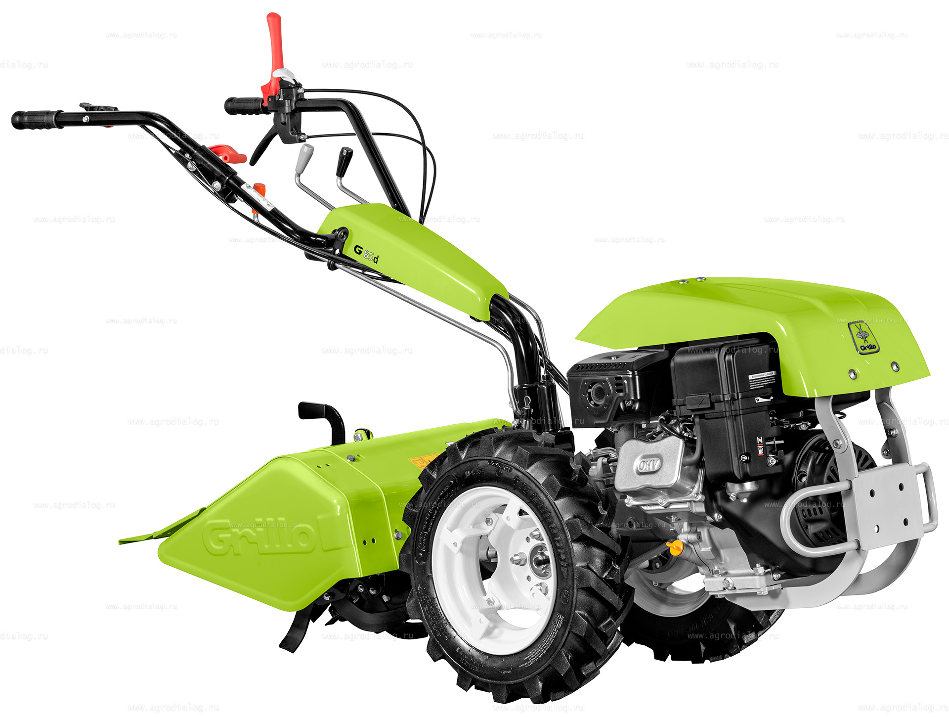 Мотоблок Grillo G 85d AE (Robin-Subaru) относится к классу профессиональных мотоблоков и является идеальным решением для собственников территорий, которым требуется сочетание многофункциональности и высокого уровня эргономики на площадях до нескольких гектар. Запуск двигателя производится простым поворотом ключа. Разблокируемый дифференциал значительно упрощает работу при маневрировании. Виброизолированная рулевая колонка - виброизоляция предназначена для гашения толчков передающихся от мотоблока на рукоятку управления, что обеспечивает комфортную работу. Уникальная конструкция рукоятки позволяет выбрать самое удобное положение для пользователя, что снижает утомляемость и повышает производительность труда. Реверсивная рулевая колонка позволяет менять направление работы мотоблока с различным навесным оборудованием. Накладки на рукоятках из специальной резины исключают проскальзывание, делают управление культиватором более комфортным. Благодаря профессиональной многоскоростной трансмиссии мотоблок Grillo G 85d AE (Robin-Subaru) справится с задачами любой сложности: убрать снег, подмести, скосить бурьян или газон, обработать почву, перевезти груз или заготовить сено. ВОМ и навесное оборудование автоматически отключается при включении заднего хода во избежание несчастных случаев. ВОМ имеет одну скорость - до 965 об/мин, независимо от скорости передвижения мотоблока. ВОМ оборудован быстроразъемной муфтой, что позволяет производить смену навесного оборудования в считанные секунды. Рычаг Motorstop - обеспечивает 100% безопасность во время работы. Как только оператор отпускает рукоятку, мотоблок Grillo G 85d AE (Robin-Subaru) и навесное оборудование немедленно останавливаются. В комплекте капот и колеса 4.00-8 с высокими сцепными свойствами для удобства работы с различным навесным оборудованием и обеспечения лучшего сцепления с грунтом. Капот обеспечивает защиту двигателя от пыли и удара. Все компоненты, от самых простых до самых сложных - все изготавливается компанией Grillo в Италии с использованием лучших материалов и самых современных технологий, что позволяет постоянно добиваться высокого качества под 100% контролем. Мотоблоки компании Grillo окрашиваются двойным слоем электростатической порошковой краски. Сначала выполняются промывочная и подготовительная ванна, затем поверхность грунтуют и проводят термическую обработку, это лучшая основа для нанесения окрасочных слоёв. После второго слоя краски проводится дополнительная термическая обработка при температуре 190°С, которая обеспечивает твёрдость и блеск. При завершающих приёмочных испытаниях мотоблок Grillo G 85d AE (Robin-Subaru) проверяется с включенным двигателем. Это ещё одна и заключительная гарантия высокого качества продукции.
