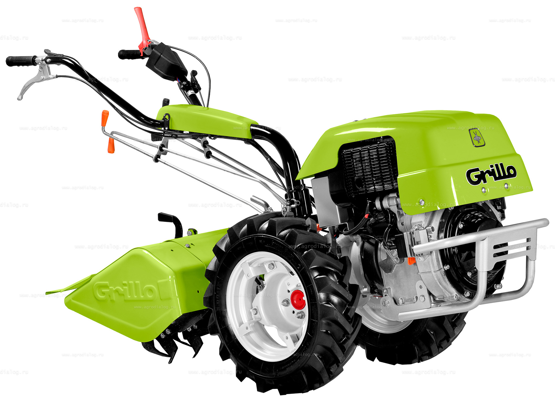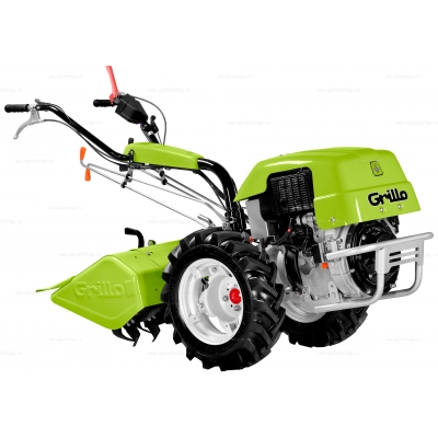 Мотоблок Grillo G 131 относится к классу профессиональных мотоблоков и с легкостью справляется практически с любой задачей по благоустройству территории и зимой и летом, однако его основной коммерческой задачей является однопроходное создание газонов. Применяя специальное навесное оборудование 1 человек за один проход мотоблока, может превратить неухоженную территорию с мелкими мусором и камнями в ровный ухоженный газон. Машина незаменима при благоустройстве заброшенных территорий и при озеленении участков после строительных работ. Блокируемый дифференциал значительно упрощает работу при маневрировании. Преимуществами двигателя Lombardini 3LD/510 являются: запуск производится простым поворотом ключа, большой крутящий момент на низких оборотах, отсутствие чувствительной к влаге системы зажигания и высокий ресурс при работе в тяжелых условиях, а так же более низкий по сравнению с бензиновыми двигателями расход топлива. Виброизолированная рулевая колонка - виброизоляция предназначена для гашения толчков передающихся от мотоблока на рукоятку управления, что обеспечивает комфортную работу. Уникальная конструкция рукоятки позволяет выбрать самое удобное положение для пользователя, что снижает утомляемость и повышает производительность труда. Реверсивная рулевая колонка позволяет менять направление работы мотоблока с различным навесным оборудованием. Накладки на рукоятках из специальной резины исключают проскальзывание, делают управление культиватором более комфортным. Благодаря профессиональной многоскоростной трансмиссии мотоблок Grillo G 131 справится с задачами любой сложности: убрать снег, подмести, скосить бурьян или газон, обработать почву, перевезти груз или заготовить сено. ВОМ и навесное оборудование автоматически отключается при включении заднего хода во избежание несчастных случаев. ВОМ оборудован быстроразъемной муфтой, что позволяет производить смену навесного оборудования в считанные секунды. Рычаг Motorstop - обеспечивает 100% безопасность во время работы. Как только оператор отпускает рукоятку, мотоблок Grillo G 131 и навесное оборудование немедленно останавливаются. В комплекте капот и колеса 5.00-12 с высокими сцепными свойствами для удобства работы с различным навесным оборудованием и обеспечения лучшего сцепления с грунтом. Капот обеспечивает защиту двигателя от пыли и удара. Все компоненты, от самых простых до самых сложных - все изготавливается компанией Grillo в Италии с использованием лучших материалов и самых современных технологий, что позволяет постоянно добиваться высокого качества под 100% контролем. Мотоблоки компании Grillo окрашиваются двойным слоем электростатической порошковой краски. Сначала выполняются промывочная и подготовительная ванна, затем поверхность грунтуют и проводят термическую обработку, это лучшая основа для нанесения окрасочных слоёв. После второго слоя краски проводится дополнительная термическая обработка при температуре 190°С, которая обеспечивает твёрдость и блеск. При завершающих приёмочных испытаниях мотоблок Grillo G 131 проверяется с включенным двигателем. Это ещё одна и заключительная гарантия высокого качества продукции.