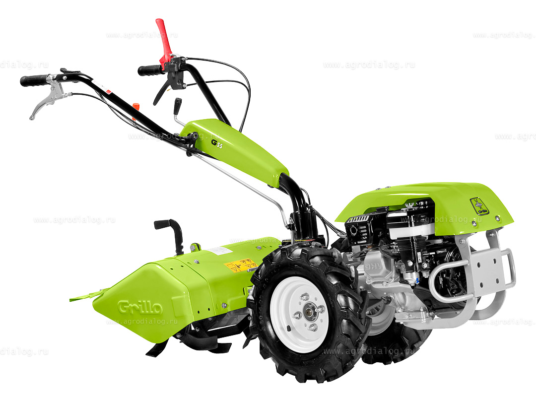 Мотоблок Grillo G 85d AE (Kohler) относится к классу профессиональных мотоблоков и является идеальным решением для собственников территорий, которым требуется сочетание многофункциональности и высокого уровня эргономики на площадях до нескольких гектар. Разблокируемый дифференциал значительно упрощает работу при маневрировании. Преимуществами дизельного двигателя Kohler KD15 350 являются: запуск производится простым поворотом ключа, большой крутящий момент на низких оборотах, отсутствие чувствительной к влаге системы зажигания и высокий ресурс при работе в тяжелых условиях, а так же более низкий по сравнению с бензиновыми двигателями расход топлива. Виброизолированная рулевая колонка - виброизоляция предназначена для гашения толчков передающихся от мотоблока на рукоятку управления, что обеспечивает комфортную работу. Уникальная конструкция рукоятки позволяет выбрать самое удобное положение для пользователя, что снижает утомляемость и повышает производительность труда. Реверсивная рулевая колонка позволяет менять направление работы мотоблока с различным навесным оборудованием. Накладки на рукоятках из специальной резины исключают проскальзывание, делают управление культиватором более комфортным. Благодаря профессиональной многоскоростной трансмиссии мотоблок Grillo G 85d AE (Kohler) справится с задачами любой сложности: убрать снег, подмести, скосить бурьян или газон, обработать почву, перевезти груз или заготовить сено. ВОМ и навесное оборудование автоматически отключается при включении заднего хода во избежание несчастных случаев. ВОМ имеет одну скорость - до 965 об/мин, независимо от скорости передвижения мотоблока. ВОМ оборудован быстроразъемной муфтой, что позволяет производить смену навесного оборудования в считанные секунды. Рычаг Motorstop - обеспечивает 100% безопасность во время работы. Как только оператор отпускает рукоятку, мотоблок Grillo G 85d AE (Kohler) и навесное оборудование немедленно останавливаются. В комплекте капот и колеса 4.00-8 с высокими сцепными свойствами для удобства работы с различным навесным оборудованием и обеспечения лучшего сцепления с грунтом. Капот обеспечивает защиту двигателя от пыли и удара. Все компоненты, от самых простых до самых сложных - все изготавливается компанией Grillo в Италии с использованием лучших материалов и самых современных технологий, что позволяет постоянно добиваться высокого качества под 100% контролем. Мотоблоки компании Grillo окрашиваются двойным слоем электростатической порошковой краски. Сначала выполняются промывочная и подготовительная ванна, затем поверхность грунтуют и проводят термическую обработку, это лучшая основа для нанесения окрасочных слоёв. После второго слоя краски проводится дополнительная термическая обработка при температуре 190°С, которая обеспечивает твёрдость и блеск. При завершающих приёмочных испытаниях мотоблок Grillo G 85d AE (Kohler) проверяется с включенным двигателем. Это ещё одна и заключительная гарантия высокого качества продукции.